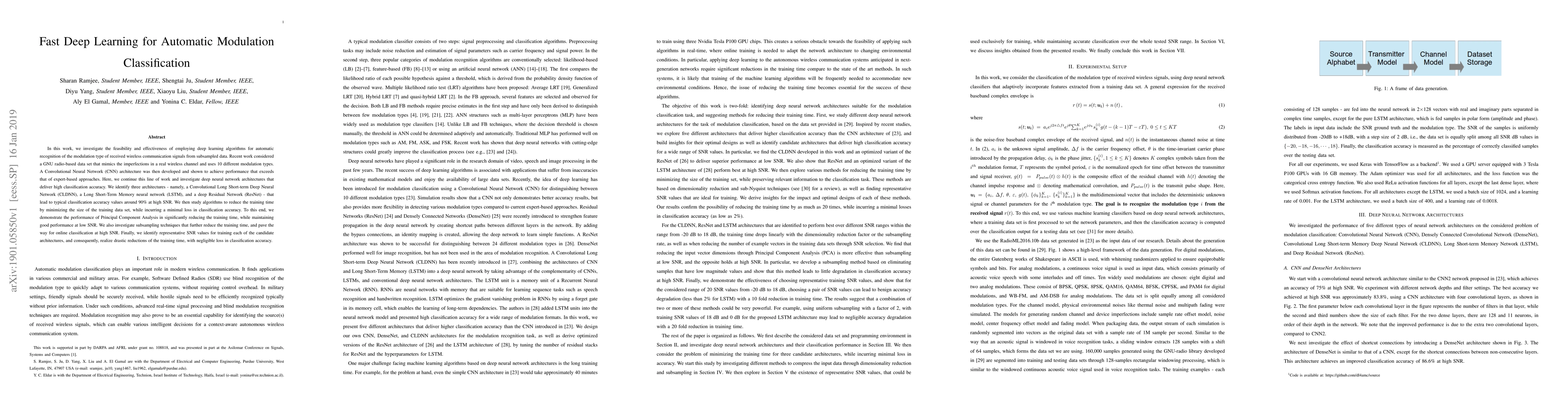 The paper presents a comprehensive analysis of deep learning architectures for modulation classification, along with dimensionality reduction and subsampling techniques to minimize training time.