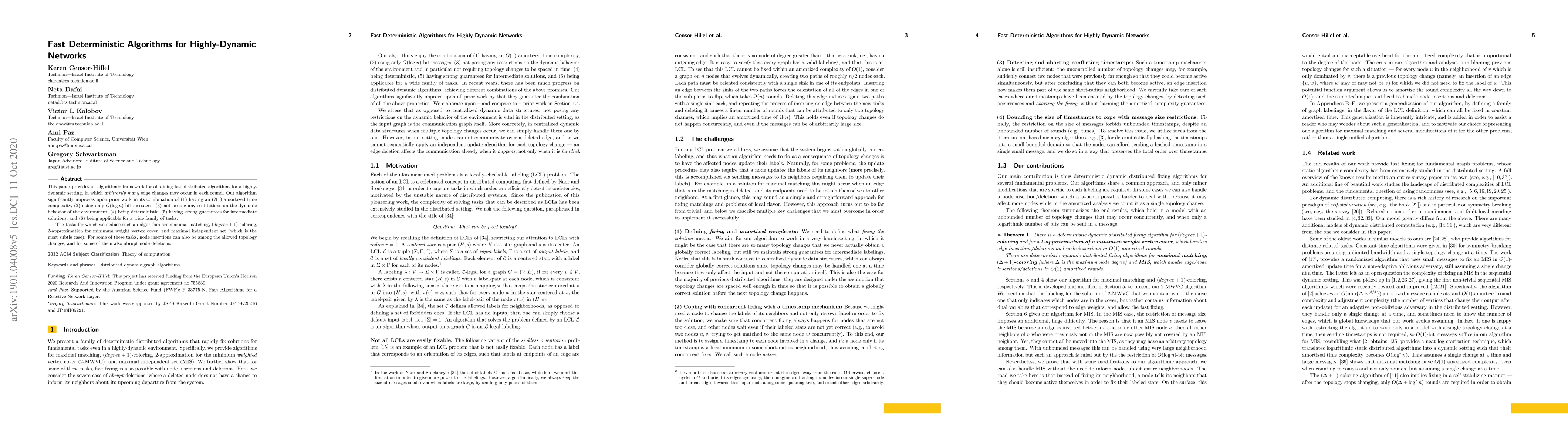 This paper presents a fast and deterministic algorithm framework for highly-dynamic networks with frequent edge changes, improving upon previous work in time complexity and message size requirements.
