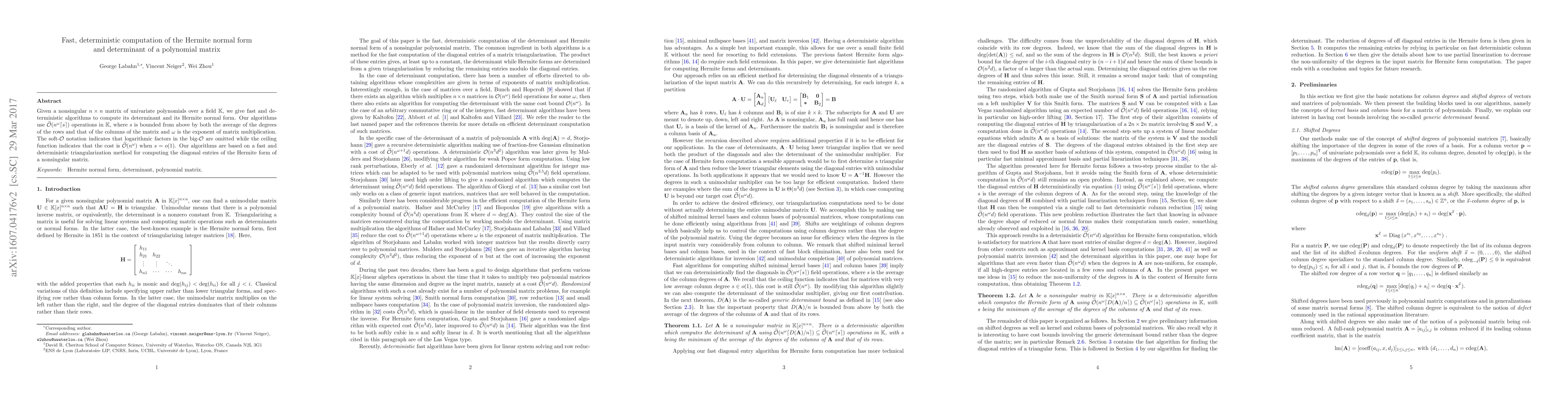 This paper presents fast and deterministic algorithms for computing the determinant and Hermite normal form of a nonsingular polynomial matrix, achieving a computational complexity of $\widetilde{\mathcal{O}}(n^\omega \lceil s \rceil)$ operations, where $s$ is bounded by the average degrees of the matrix's rows and columns, and $\omega$ is the matrix multiplication exponent. The algorithms rely on a novel triangularization method.