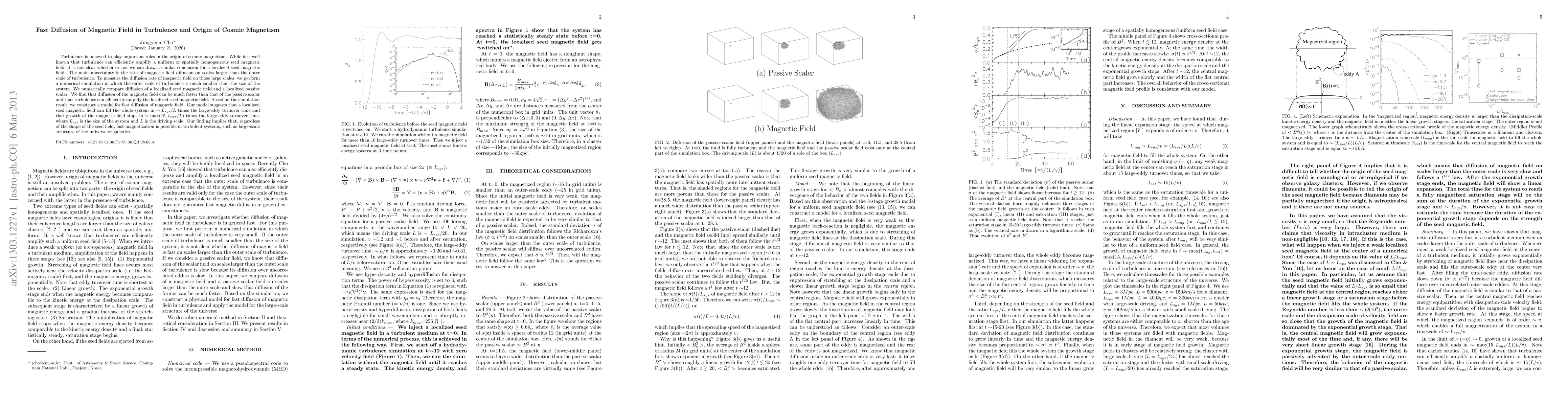Turbulence is believed to play important roles in the origin of cosmic magnetism. While it is well known that turbulence can efficiently amplify a uniform or spatially homogeneous seed magnetic field, it is not clear whether or not we can draw a similar conclusion for a localized seed magnetic field. The main uncertainty is the rate of magnetic field diffusion on scales larger than the outer scale of turbulence. To measure the diffusion rate of magnetic field on those large scales, we perform a numerical simulation in which the outer scale of turbulence is much smaller than the size of the system. We numerically compare diffusion of a localized seed magnetic field and a localized passive scalar. We find that diffusion of the magnetic field can be much faster than that of the passive scalar and that turbulence can efficiently amplify the localized seed magnetic field. Based on the simulation result, we construct a model for fast diffusion of magnetic field. Our model suggests that a localized seed magnetic field can fill the whole system in (L_sys/L) times the large-eddy turnover time and that growth of the magnetic field stops in max(15, L_sys/L) times the large-eddy turnover time, where L_sys is the size of the system and $L$ is the driving scale. Our finding implies that, regardless of the shape of the seed field, fast magnetization is possible in turbulent systems, such as large-scale structure of the universe or galaxies.