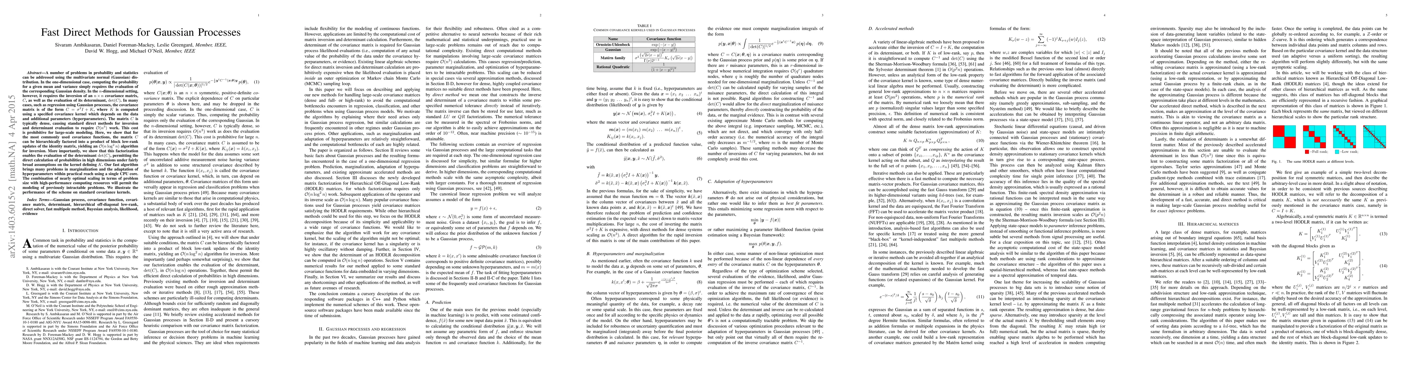 This research introduces fast direct methods for Gaussian processes, reducing computational complexity from O(n^3) to O(n log^2 n) for inversion and determinant evaluation of covariance matrices. This enables practical large-scale modeling and hyperparameter adaptation, opening possibilities for previously intractable problems.