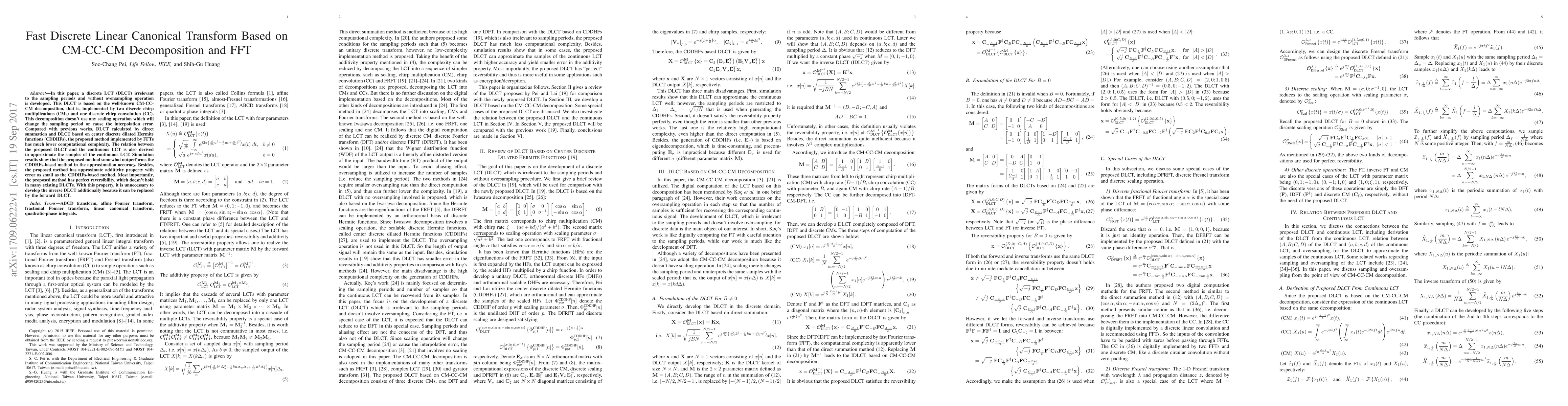 This paper introduces a fast discrete linear canonical transform (DLCT) based on CM-CC-CM decomposition and FFT, which reduces computational complexity and avoids oversampling. The proposed method shows better approximation accuracy and perfect reversibility compared to existing methods.
