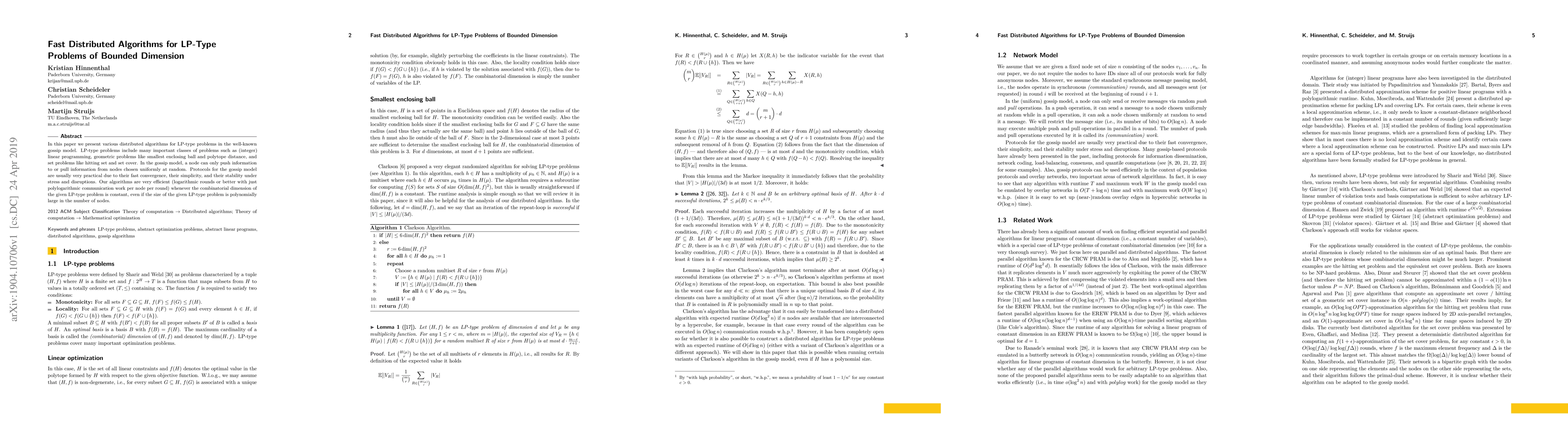 Researchers developed fast and efficient distributed algorithms for solving LP-type problems in a gossip model with constant combinatorial dimension, achieving logarithmic rounds and polylogarithmic communication work per node per round.