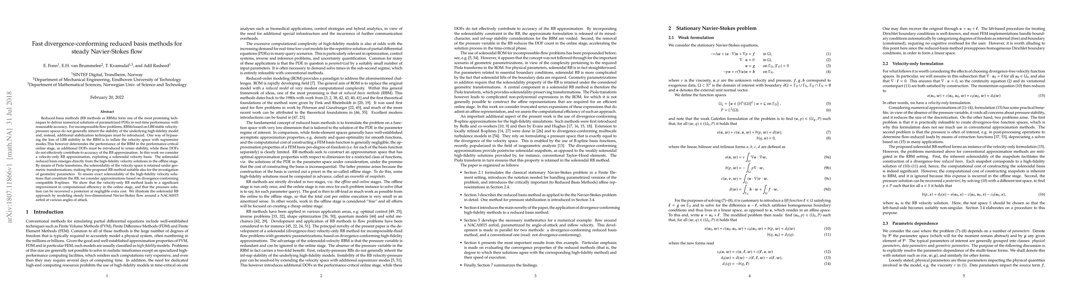 Reduced-basis methods (RB methods or RBMs) form one of the most promising techniques to deliver numerical solutions of parametrized PDEs in real-time performance with reasonable accuracy. For incompressible flow problems, RBMs based on LBB stable velocity-pressure spaces do not generally inherit the stability of the underlying high-fidelity model and, instead, additional stabilization techniques must be introduced. One way of bypassing the loss of LBB stability in the RBM is to inflate the velocity space with supremizer modes. This however deteriorates the performance of the RBM in the performance-critical online stage, as additional DOFs must be introduced to retain stability, while these DOFs do not effectively contribute to accuracy of the RB approximation. In this work we consider a velocity-only RB approximation, exploiting a solenoidal velocity basis. The solenoidal reduced basis emerges directly from the high-fidelity velocity solutions in the offline stage. By means of Piola transforms, the solenoidality of the velocity space is retained under geometric transformations, making the proposed RB method suitable also for the investigation of geometric parameters. To ensure exact solenoidality of the high-fidelity velocity solutions that constitute the RB, we consider approximations based on divergence-conforming compatible B-splines. We show that the velocity-only RB method leads to a significant improvement in computational efficiency in the online stage, and that the pressure solution can be recovered a posteriori at negligible extra cost. We illustrate the solenoidal RB approach by modeling steady two-dimensional Navier-Stokes flow around a NACA0015 airfoil at various angles of attack.
