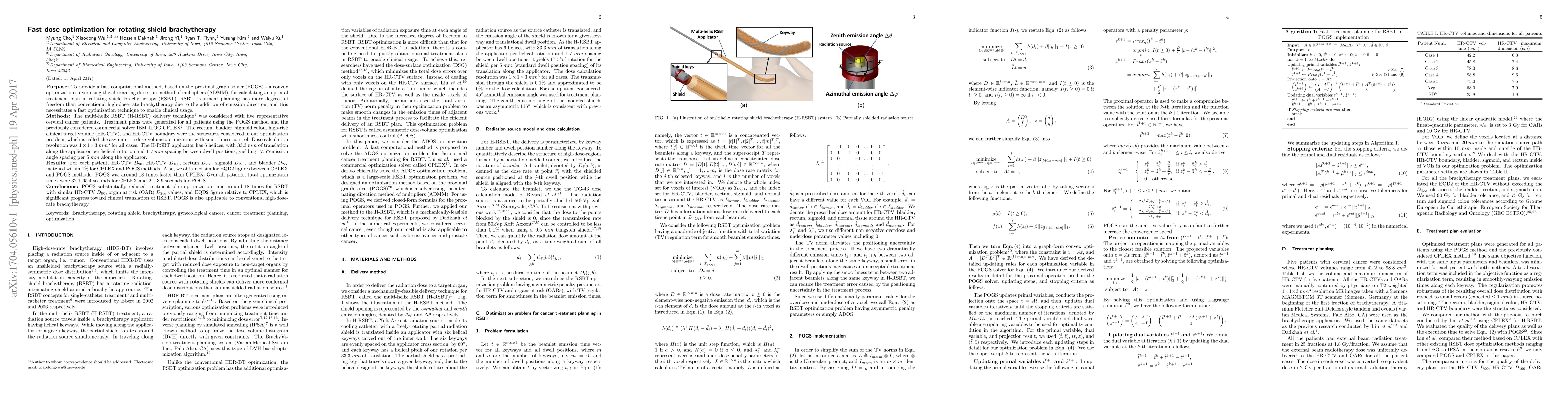 A new method called POGS significantly reduces treatment plan optimization time for rotating shield brachytherapy by 18 times compared to a commercial solver, without compromising accuracy or efficacy.