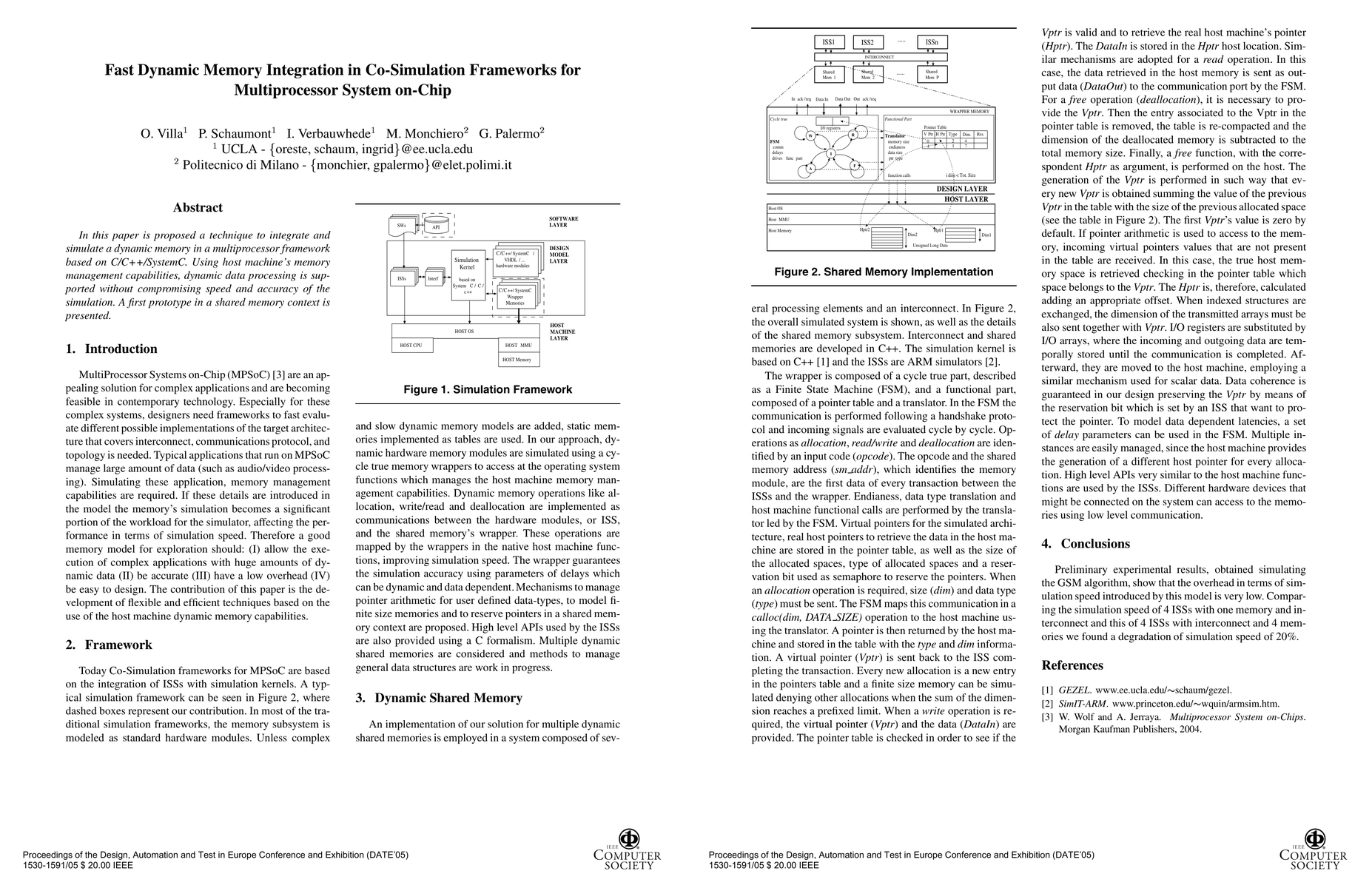 In this paper is proposed a technique to integrate and simulate a dynamic memory in a multiprocessor framework based on C/C++/SystemC. Using host machine's memory management capabilities, dynamic data processing is supported without compromising speed and accuracy of the simulation. A first prototype in a shared memory context is presented.