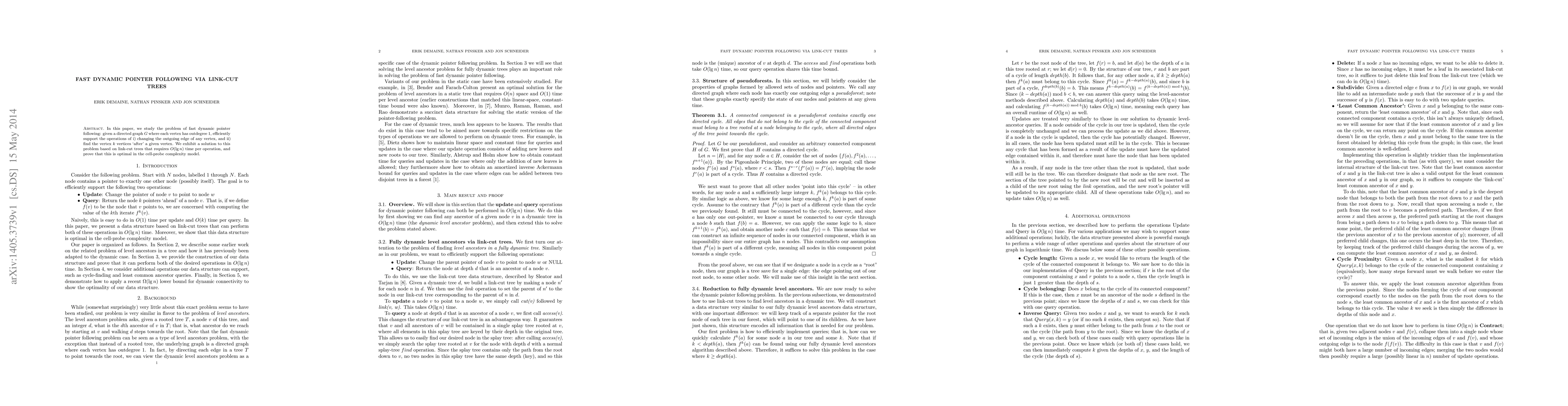 In this paper, we study the problem of fast dynamic pointer following: given a directed graph $G$ where each vertex has outdegree $1$, efficiently support the operations of i) changing the outgoing edge of any vertex, and ii) find the vertex $k$ vertices `after' a given vertex. We exhibit a solution to this problem based on link-cut trees that requires $O(\lg n)$ time per operation, and prove that this is optimal in the cell-probe complexity model.