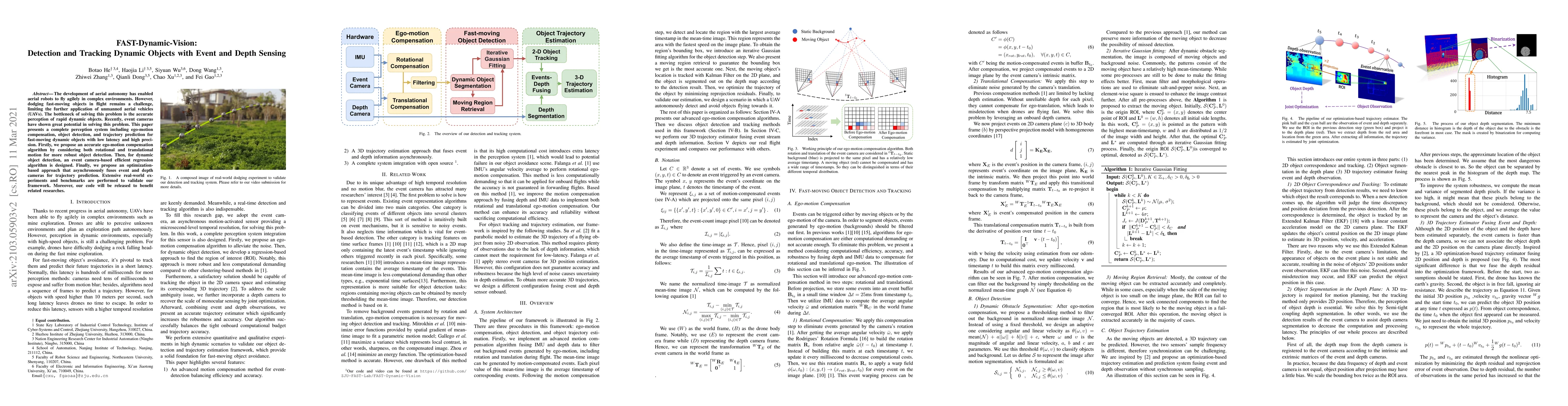 This paper presents a perception system for detecting and tracking fast-moving objects using event and depth cameras, including ego-motion compensation, efficient detection, and trajectory prediction. The proposed methods achieve low latency and high precision, validated by extensive real-world experiments and benchmarks.
