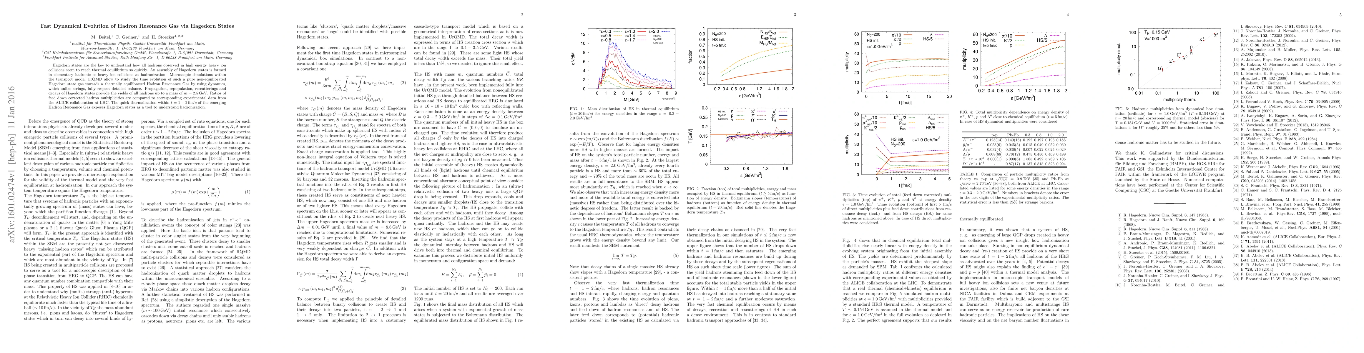 Hagedorn states are the key to understand how all hadrons observed in high energy heavy ion collisions seem to reach thermal equilibrium so quickly. An assembly of Hagedorn states is formed in elementary hadronic or heavy ion collisions at hadronization. Microscopic simulations within the transport model UrQMD allow to study the time evolution of such a pure non-equilibrated Hagedorn state gas towards a thermally equilibrated Hadron Resonance Gas by using dynamics, which unlike strings, fully respect detailed balance. Propagation, repopulation, rescatterings and decays of Hagedorn states provide the yields of all hadrons up to a mass of m=2.5 GeV. Ratios of feed down corrected hadron multiplicities are compared to corresponding experimental data from the ALICE collaboration at LHC. The quick thermalization within t=1-2 fm\c of the emerging Hadron Resonance Gas exposes Hagedorn states as a tool to understand hadronization.