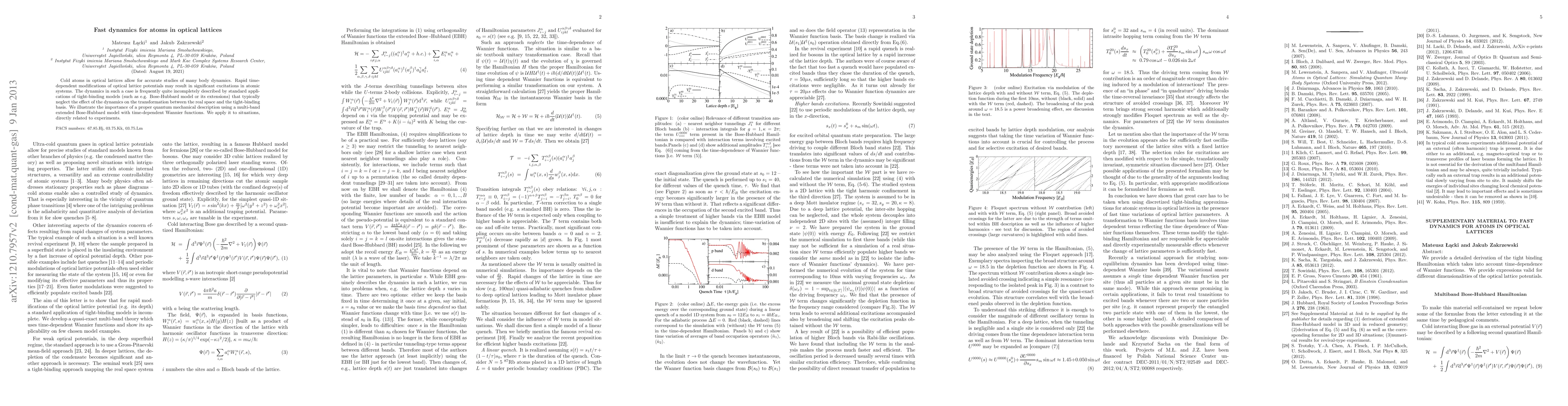 Cold atoms in optical lattices allow for accurate studies of many body dynamics. Rapid time-dependent modifications of optical lattice potentials may result in significant excitations in atomic systems. The dynamics in such a case is frequently quite incompletely described by standard applications of tight-binding models (such as e.g. Bose-Hubbard model or its extensions) that typically neglect the effect of the dynamics on the transformation between the real space and the tight-binding basis. We illustrate the importance of a proper quantum mechanical description using a multi-band extended Bose-Hubbard model with time-dependent Wannier functions. We apply it to situations, directly related to experiments.