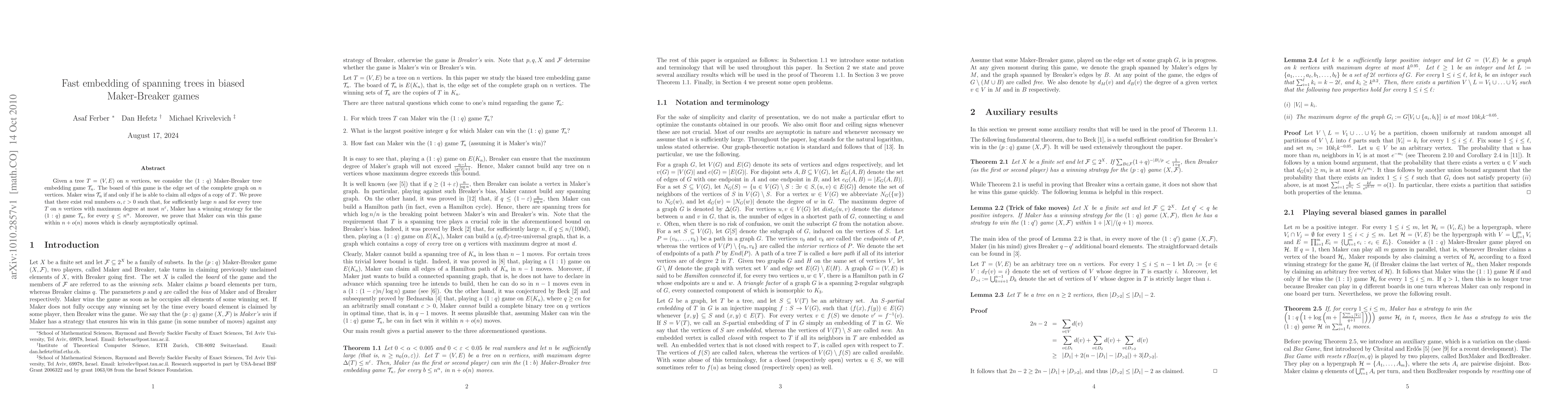 Research shows that in a biased Maker-Breaker game, the 'Maker' can win within a certain number of moves for large trees with limited edge connections, offering an asymptotically optimal winning strategy.