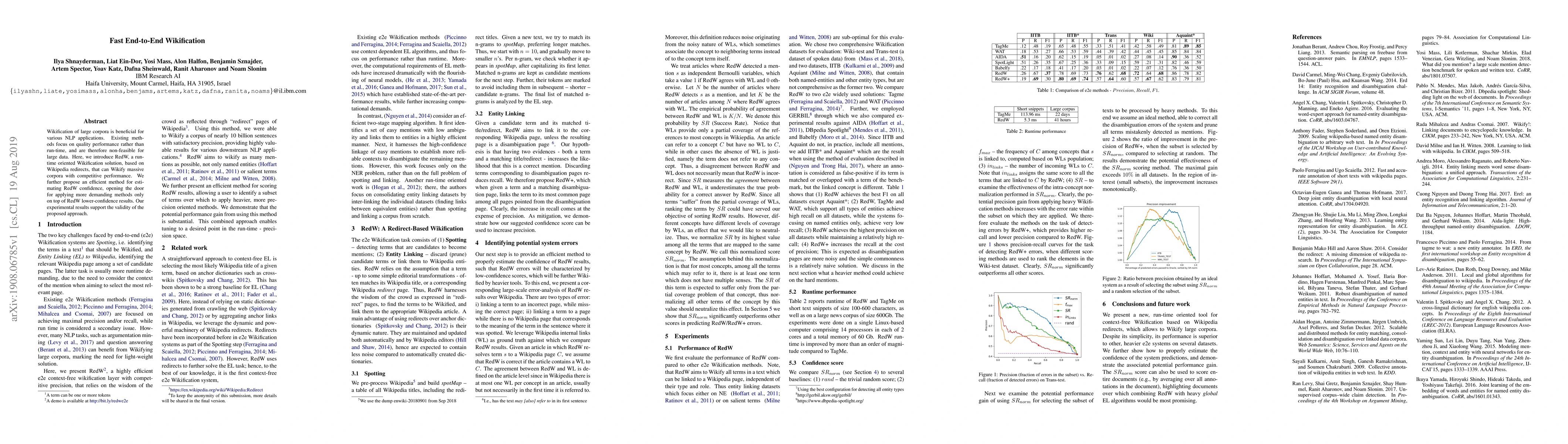 This paper introduces RedW, a fast end-to-end Wikification solution leveraging Wikipedia redirects for efficient processing of large corpora, balancing performance with run-time. It also proposes a method for estimating RedW confidence to selectively apply more demanding techniques on lower-confidence results.