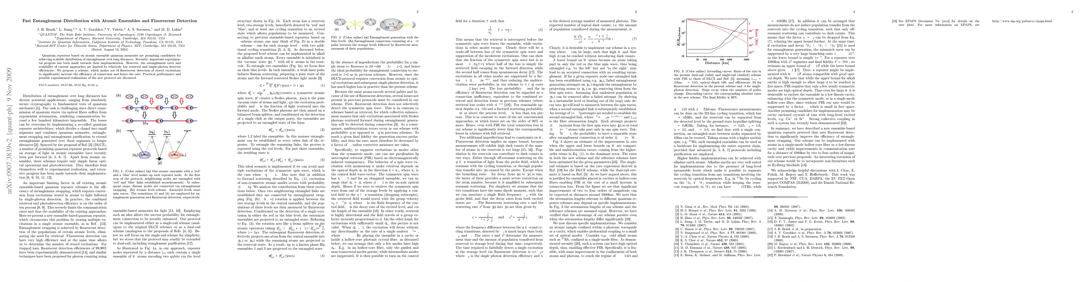 Quantum repeaters based on atomic ensemble quantum memories are promising candidates for achieving scalable distribution of entanglement over long distances. Recently, important experimental progress has been made towards their implementation. However, the entanglement rates and scalability of current approaches are limited by relatively low retrieval and single-photon detector efficiencies. We propose a scheme, which makes use of fluorescent detection of stored excitations to significantly increase the efficiency of connection and hence the rate. Practical performance and possible experimental realizations of the new protocol are discussed.