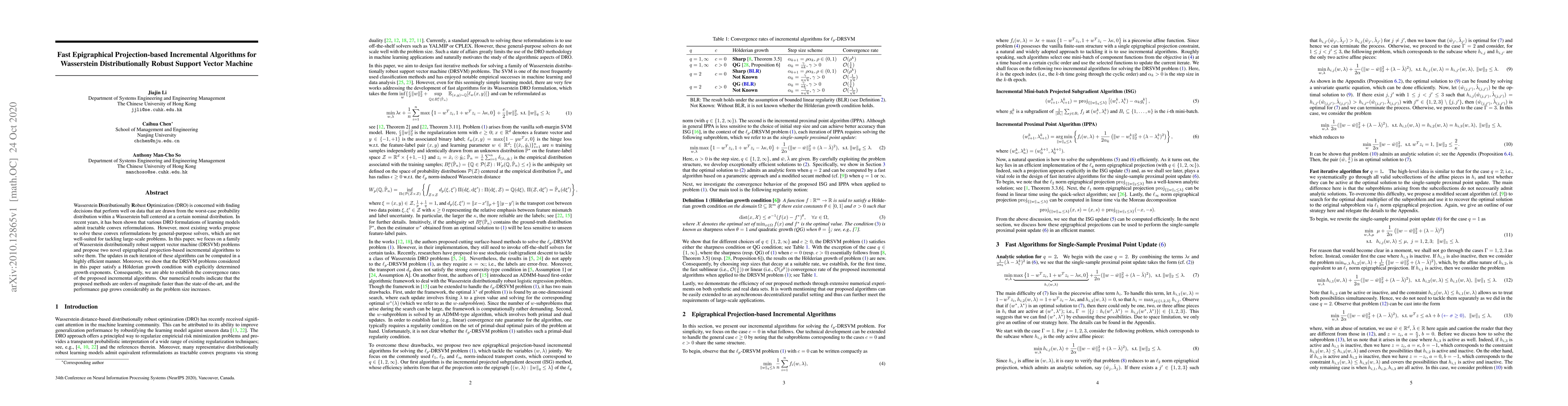 The paper introduces efficient epigraphical projection-based incremental algorithms for Wasserstein DRSVM problems, providing explicit growth exponents and convergence rate analysis.
