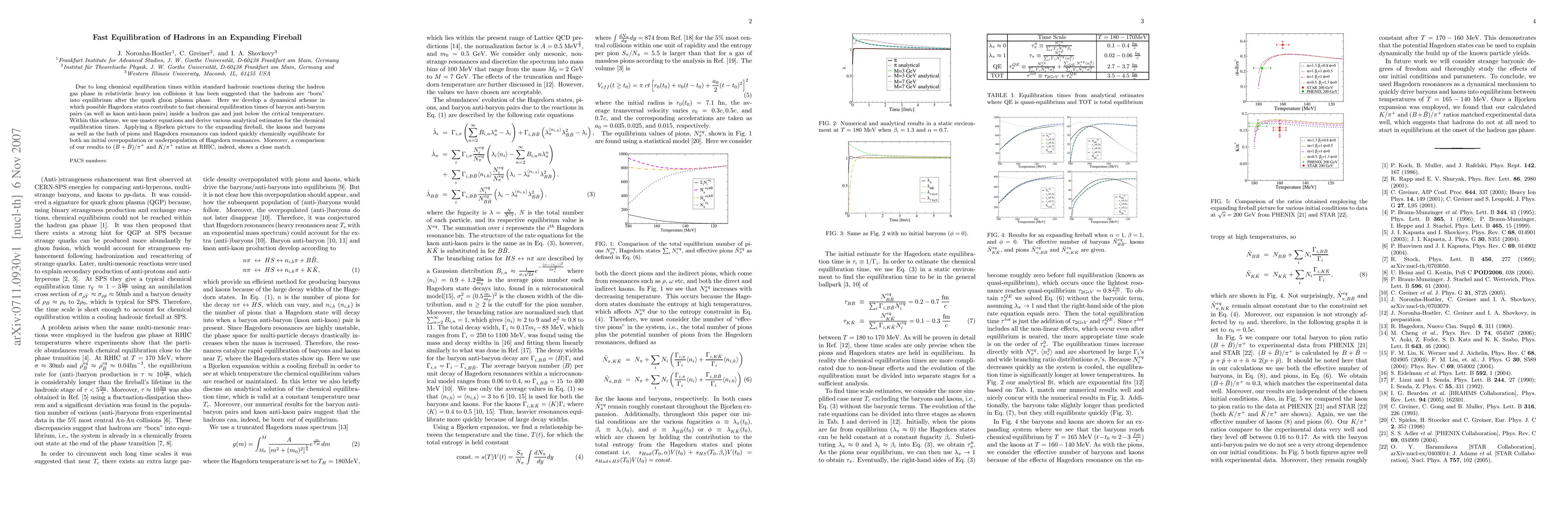 The paper introduces a novel dynamical scheme based on master equations to describe fast chemical equilibration of hadrons, incorporating Hagedorn resonances in an expanding fireball scenario.