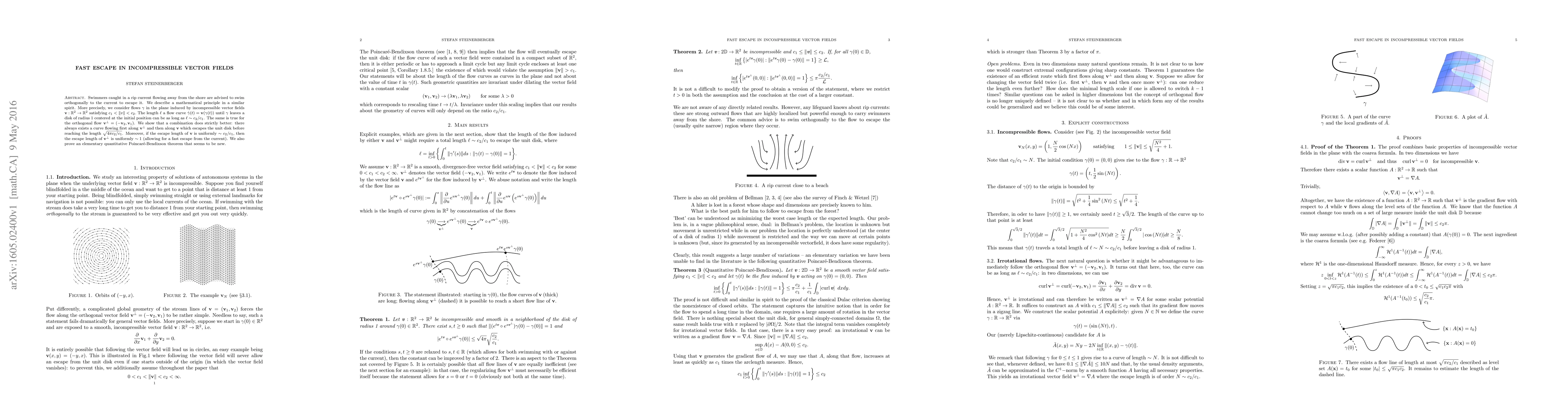 Swimmers caught in a rip current flowing away from the shore are advised to swim orthogonally to the current to escape it. We describe a mathematical principle in a similar spirit. More precisely, we consider flows $\gamma$ in the plane induced by incompressible vector fields $\textbf{v}:\mathbb{R}^2 \rightarrow \mathbb{R}^2$ satisfying $ c_1 < \|v\| < c_2.$ The length $\ell$ a flow curve $\dot \gamma(t) = \textbf{v}(\gamma(t))$ until $\gamma$ leaves a disk of radius 1 centered at the initial position can be as long as $\ell \sim c_2/c_1$. The same is true for the orthogonal flow $\textbf{v}^{\perp} = (-\textbf{v}_2, \textbf{v}_1)$. We show that a combination does strictly better: there always exists a curve flowing first along $\textbf{v}^{\perp}$ and then along $\textbf{v}$ which escapes the unit disk before reaching the length $ \sqrt{4\pi c_2 / c_1}$. Moreover, if the escape length of $\textbf{v}$ is uniformly $\sim c_2/c_1$, then the escape length of $\textbf{v}^{\perp}$ is uniformly $\sim 1$ (allowing for a fast escape from the current). We also prove an elementary quantitative Poincar\'{e}-Bendixson theorem that seems to be new.