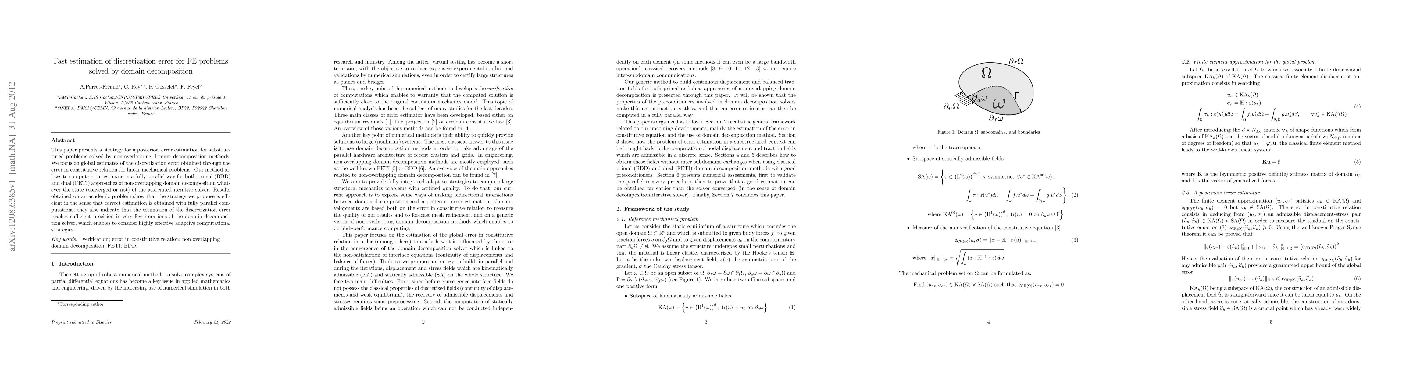 This paper proposes a parallel strategy for a posteriori error estimation in substructured problems solved by non-overlapping domain decomposition methods, achieving accurate discretization error estimates with minimal iterations. The method is effective for both primal and dual decomposition approaches, regardless of the solver's convergence state.