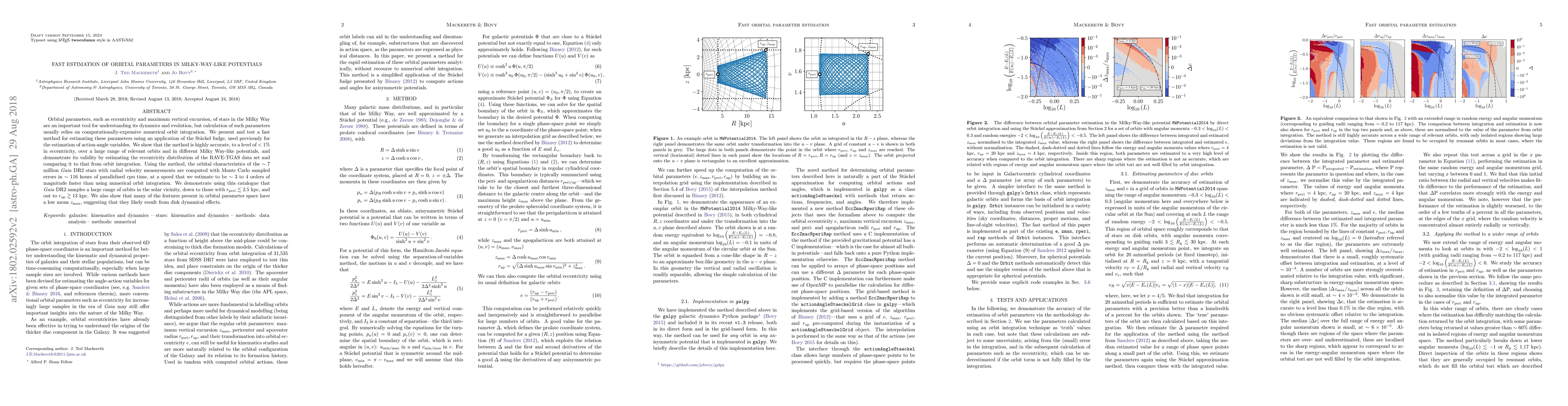 Orbital parameters, such as eccentricity and maximum vertical excursion, of stars in the Milky Way are an important tool for understanding its dynamics and evolution, but calculation of such parameters usually relies on computationally-expensive numerical orbit integration. We present and test a fast method for estimating these parameters using an application of the St\"ackel fudge, used previously for the estimation of action-angle variables. We show that the method is highly accurate, to a level of $<1\%$ in eccentricity, over a large range of relevant orbits and in different Milky Way-like potentials, and demonstrate its validity by estimating the eccentricity distribution of the RAVE-TGAS data set and comparing it to that from orbit integration. Using the method, the orbital characteristics of the $\sim 7$ million $\textit{Gaia}$ DR2 stars with radial velocity measurements are computed with Monte Carlo sampled errors in $\sim 116$ hours of parallelised cpu time, at a speed that we estimate to be $\sim 3$ to $4$ orders of magnitude faster than using numerical orbit integration. We demonstrate using this catalogue that $\textit{Gaia}$ DR2 samples a large range of orbits in the solar vicinity, down to those with $r_\mathrm{peri} \lesssim 2.5$ kpc, and out to $r_\mathrm{ap} \gtrsim 13$ kpc. We also show that many of the features present in orbital parameter space have a low mean $z_\mathrm{max}$, suggesting that they likely result from disk dynamical effects.
