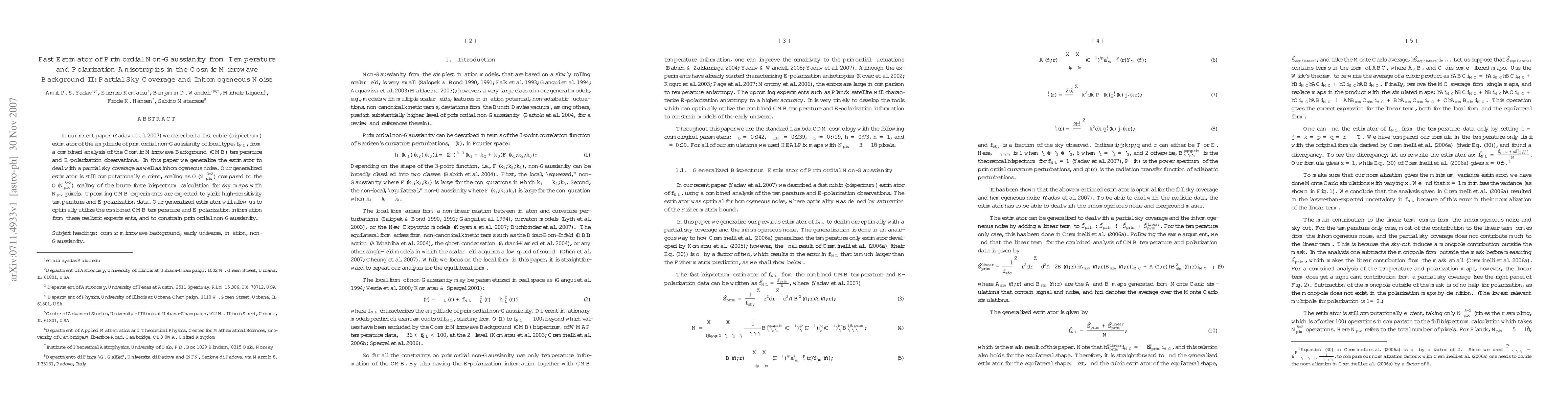 This paper generalizes a fast estimator for primordial non-Gaussianity from CMB temperature and polarization data, addressing partial sky coverage and inhomogeneous noise. The new estimator remains computationally efficient, enabling optimal use of upcoming high-sensitivity CMB experiment data.