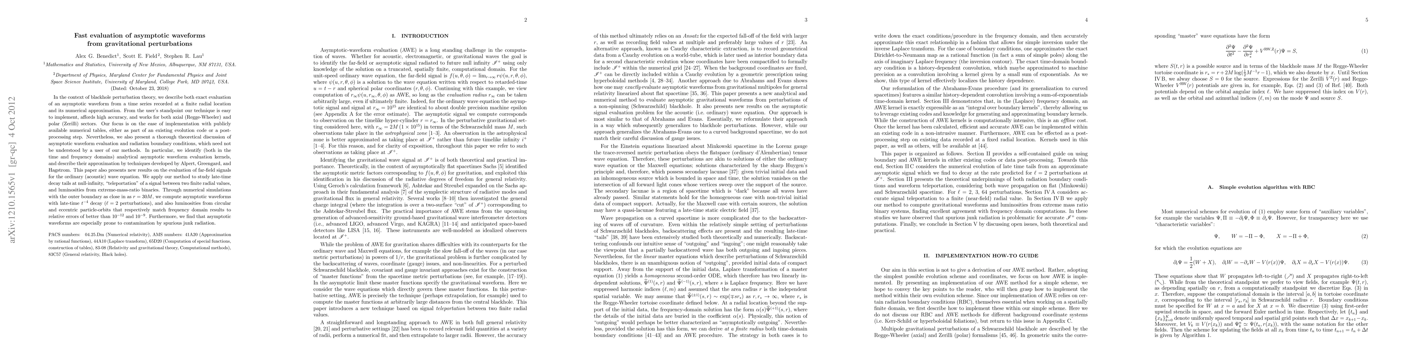 In the context of blackhole perturbation theory, we describe both exact evaluation of an asymptotic waveform from a time series recorded at a finite radial location and its numerical approximation. From the user's standpoint our technique is easy to implement, affords high accuracy, and works for both axial (Regge-Wheeler) and polar (Zerilli) sectors. Our focus is on the ease of implementation with publicly available numerical tables, either as part of an existing evolution code or a post-processing step. Nevertheless, we also present a thorough theoretical discussion of asymptotic waveform evaluation and radiation boundary conditions, which need not be understood by a user of our methods. In particular, we identify (both in the time and frequency domains) analytical asymptotic waveform evaluation kernels, and describe their approximation by techniques developed by Alpert, Greengard, and Hagstrom. This paper also presents new results on the evaluation of far-field signals for the ordinary (acoustic) wave equation. We apply our method to study late-time decay tails at null-infinity, "teleportation" of a signal between two finite radial values, and luminosities from extreme-mass-ratio binaries. Through numerical simulations with the outer boundary as close in as r = 30M, we compute asymptotic waveforms with late-time t^{-4} decay (l = 2 perturbations), and also luminosities from circular and eccentric particle-orbits that respectively match frequency domain results to relative errors of better than 10^{-12} and 10^{-9}. Furthermore, we find that asymptotic waveforms are especially prone to contamination by spurious junk radiation.