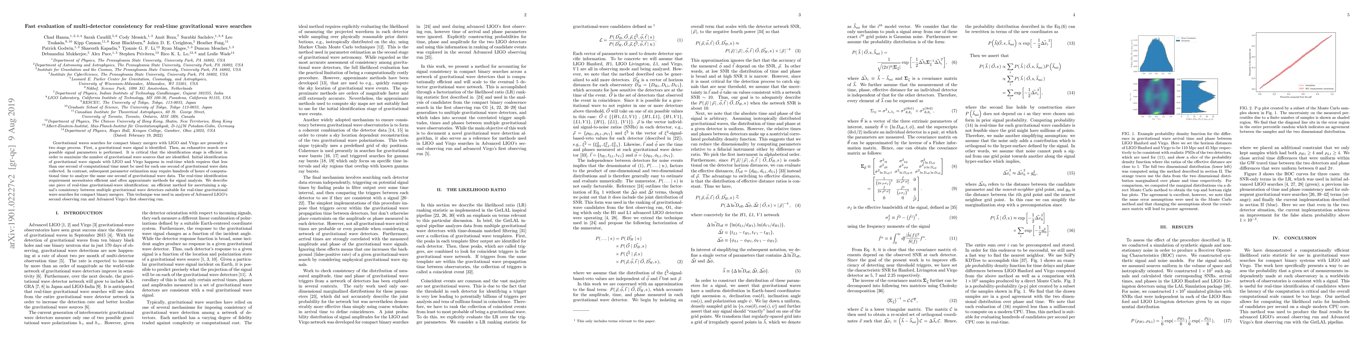 This paper presents a fast evaluation method for assessing the consistency of gravitational wave signals across multiple detectors, crucial for real-time searches in LIGO and Virgo. The technique ensures efficient identification in under one second, enabling the detection of compact binary mergers while allowing for more computationally intensive analysis later.