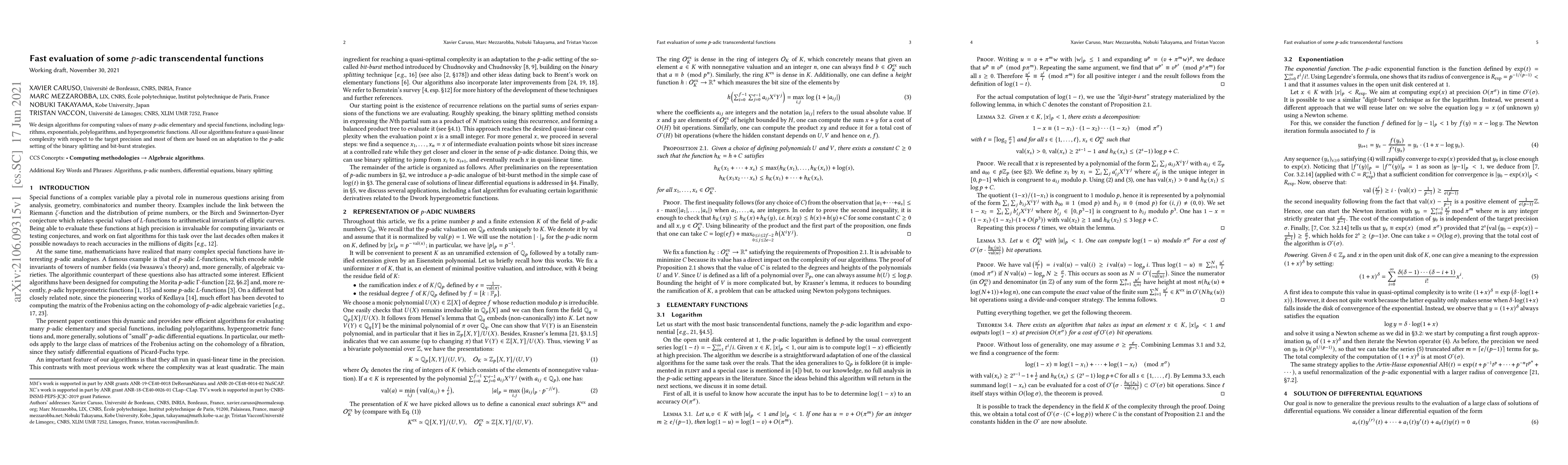 Researchers developed algorithms to quickly compute values of p-adic transcendental functions, including logarithms and hypergeometric functions, with a quasi-linear complexity, improving efficiency in calculations.