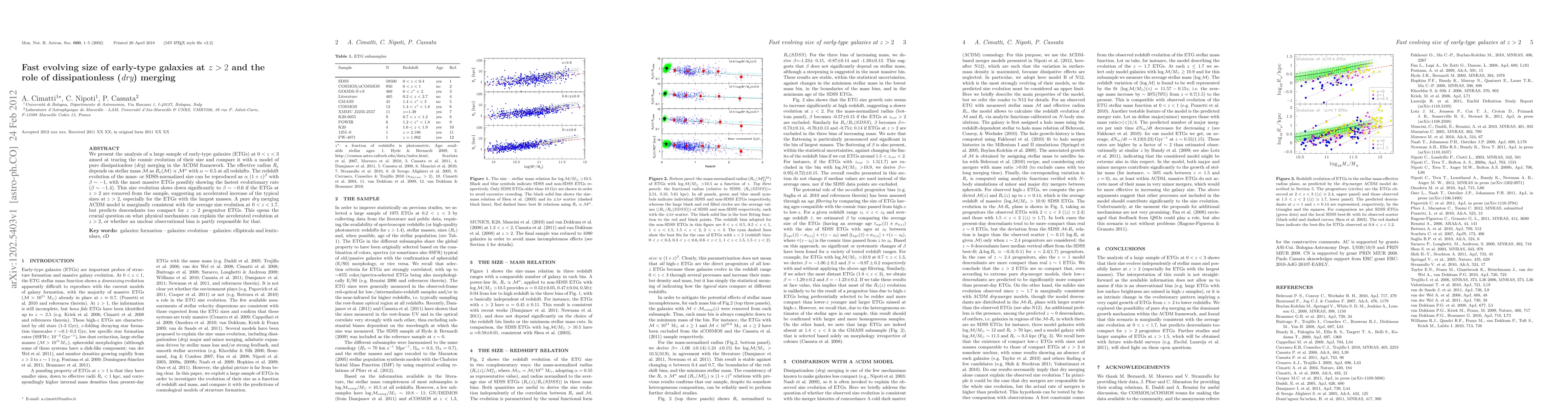 This paper analyzes early-type galaxies (ETGs) at redshifts 0<z<3, finding that their effective radius scales with stellar mass and evolves rapidly at z>2. The study suggests that dry merging alone cannot fully explain the accelerated size growth of massive ETGs at high redshifts, raising questions about additional physical mechanisms or observational biases.