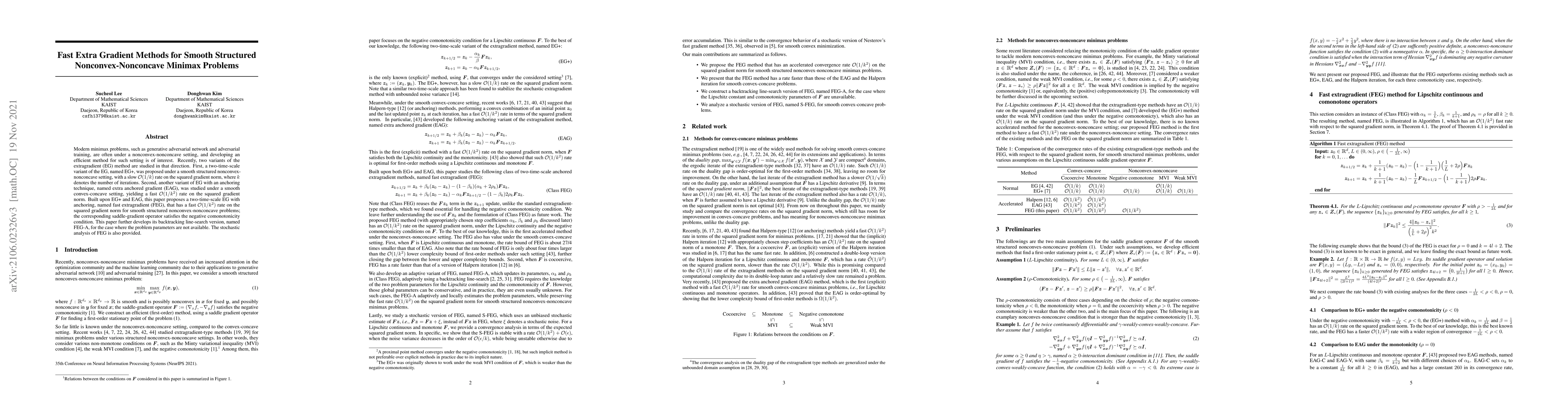 Modern minimax problems, such as generative adversarial network and adversarial training, are often under a nonconvex-nonconcave setting, and developing an efficient method for such setting is of interest. Recently, two variants of the extragradient (EG) method are studied in that direction. First, a two-time-scale variant of the EG, named EG+, was proposed under a smooth structured nonconvex-nonconcave setting, with a slow $\mathcal{O}(1/k)$ rate on the squared gradient norm, where $k$ denotes the number of iterations. Second, another variant of EG with an anchoring technique, named extra anchored gradient (EAG), was studied under a smooth convex-concave setting, yielding a fast $\mathcal{O}(1/k^2)$ rate on the squared gradient norm. Built upon EG+ and EAG, this paper proposes a two-time-scale EG with anchoring, named fast extragradient (FEG), that has a fast $\mathcal{O}(1/k^2)$ rate on the squared gradient norm for smooth structured nonconvex-nonconcave problems; the corresponding saddle-gradient operator satisfies the negative comonotonicity condition. This paper further develops its backtracking line-search version, named FEG-A, for the case where the problem parameters are not available. The stochastic analysis of FEG is also provided.