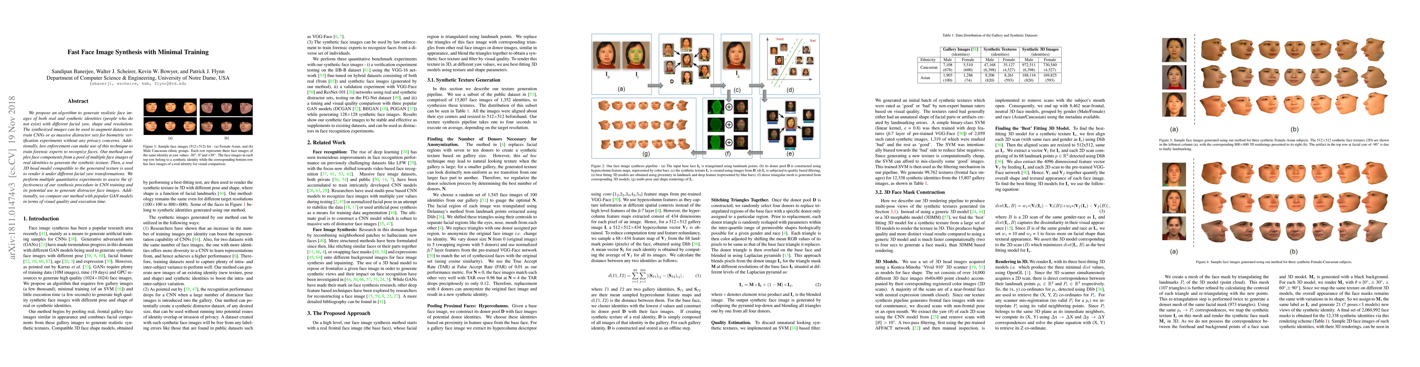 Researchers propose an algorithm to generate realistic face images of both real and synthetic identities with minimal training, useful for augmenting datasets or creating distractor sets without privacy concerns.
