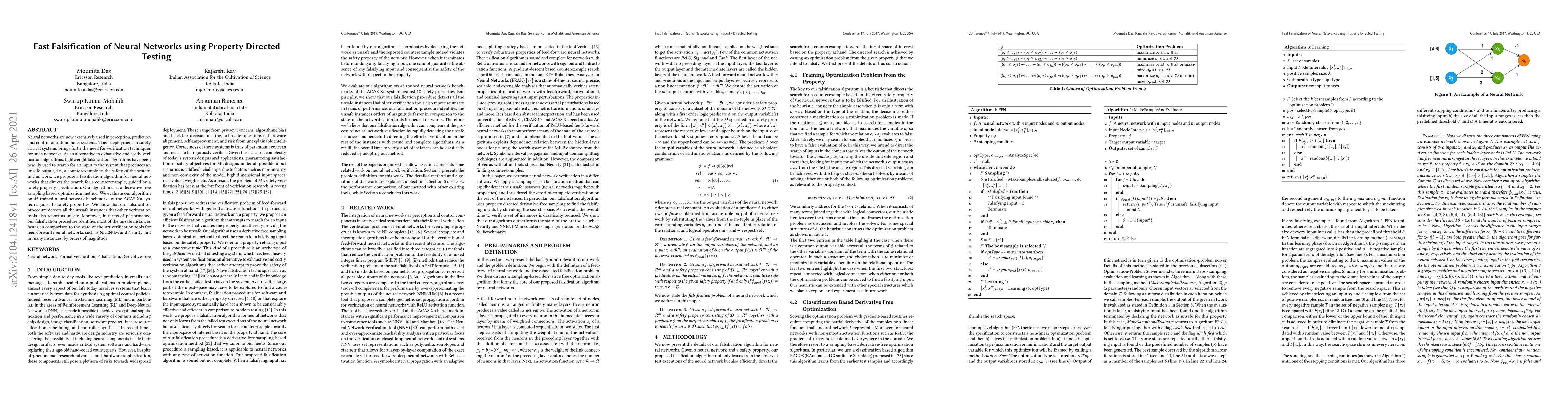 This paper proposes a fast falsification algorithm for neural networks that uses property-directed testing to efficiently find counterexamples to safety properties. The method outperforms state-of-the-art verification tools in detecting unsafe instances, often by orders of magnitude.