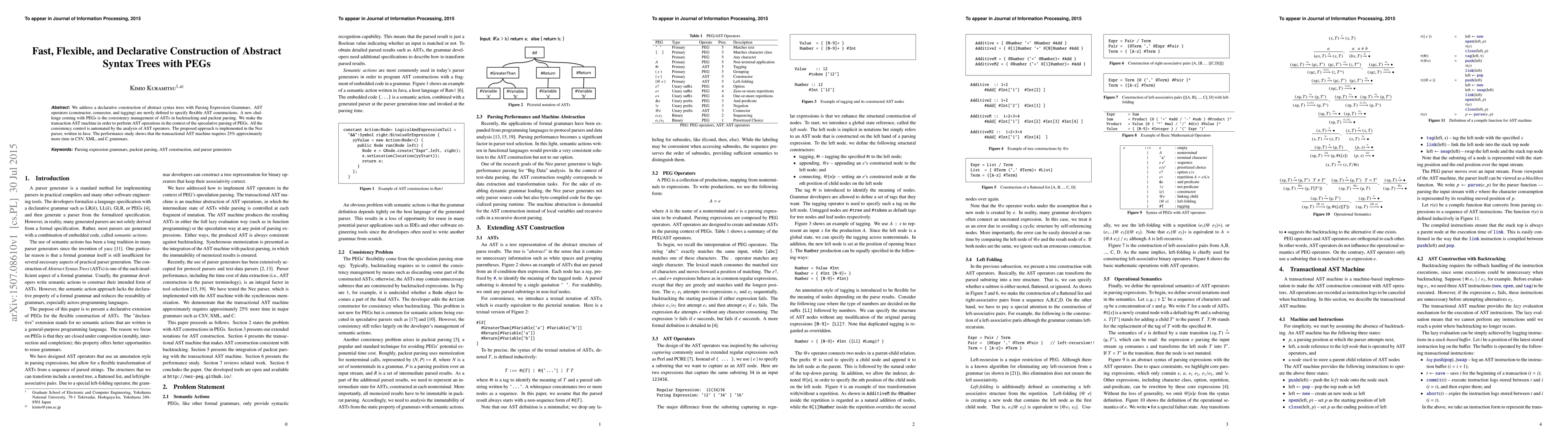 Researchers developed a new method for constructing abstract syntax trees using Parsing Expression Grammars (PEGs) that improves consistency and flexibility, requiring approximately 25% more time than existing approaches.