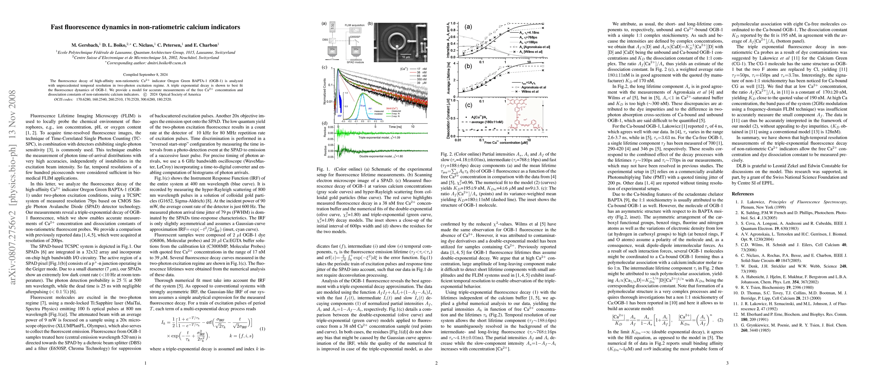 Researchers measured fast fluorescence dynamics of a non-ratiometric calcium indicator using two-photon excitation, revealing a triple exponential decay that helps create accurate models for measuring free Ca2+ concentrations.