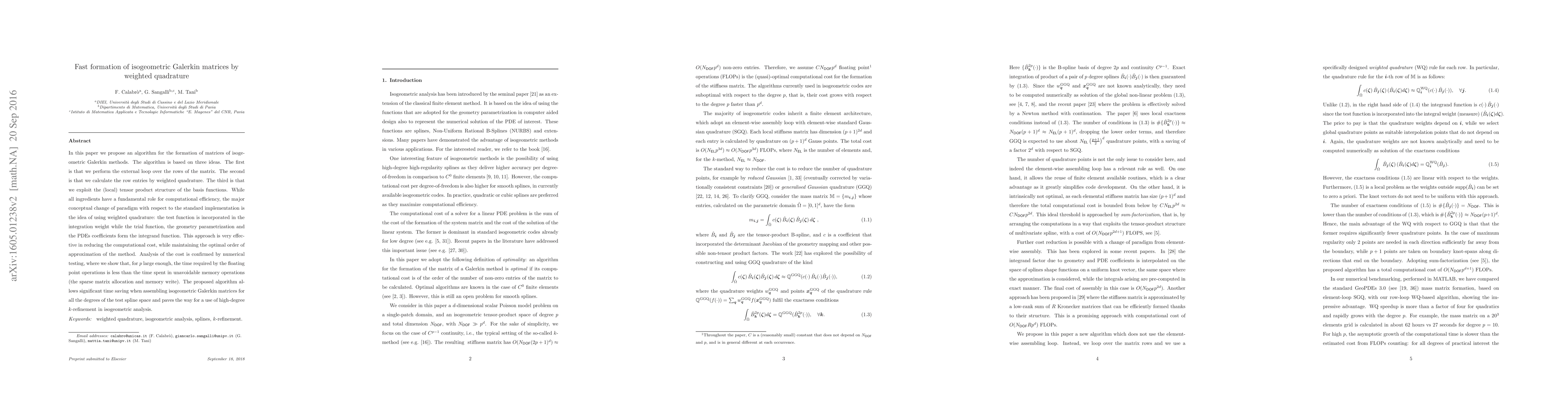 Researchers develop an efficient algorithm to assemble isogeometric Galerkin matrices using weighted quadrature, reducing computational cost while maintaining optimal approximation order.