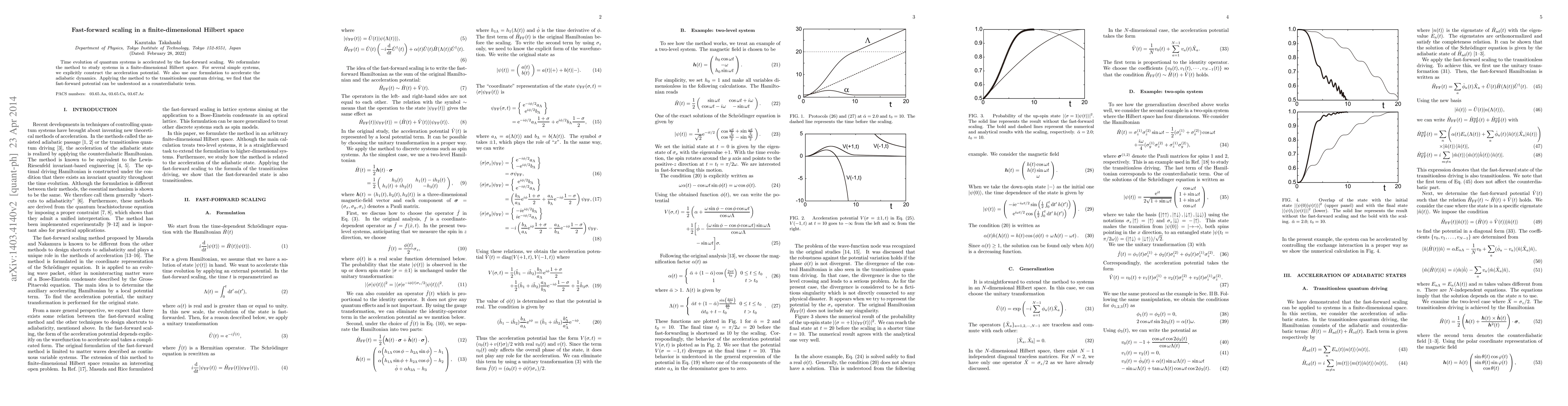 This paper reformulates fast-forward scaling to accelerate time evolution in finite-dimensional quantum systems, explicitly constructing acceleration potentials for simple systems. It also applies the method to transitionless quantum driving, revealing the fast-forward potential as a counterdiabatic term.
