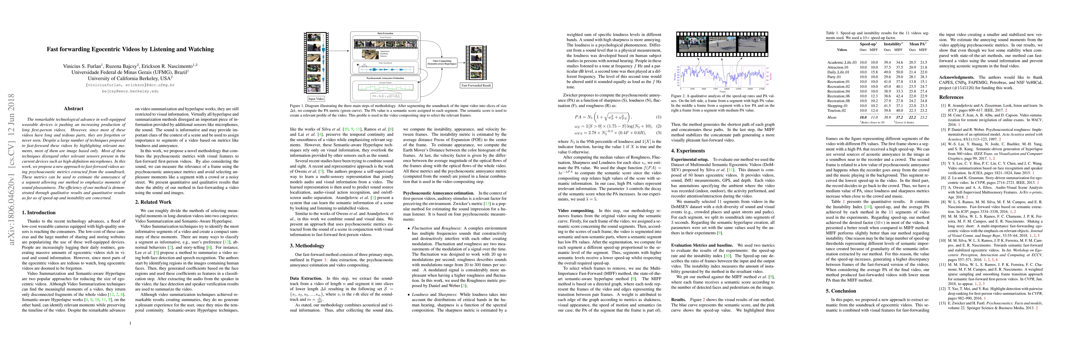 The remarkable technological advance in well-equipped wearable devices is pushing an increasing production of long first-person videos. However, since most of these videos have long and tedious parts, they are forgotten or never seen. Despite a large number of techniques proposed to fast-forward these videos by highlighting relevant moments, most of them are image based only. Most of these techniques disregard other relevant sensors present in the current devices such as high-definition microphones. In this work, we propose a new approach to fast-forward videos using psychoacoustic metrics extracted from the soundtrack. These metrics can be used to estimate the annoyance of a segment allowing our method to emphasize moments of sound pleasantness. The efficiency of our method is demonstrated through qualitative results and quantitative results as far as of speed-up and instability are concerned.