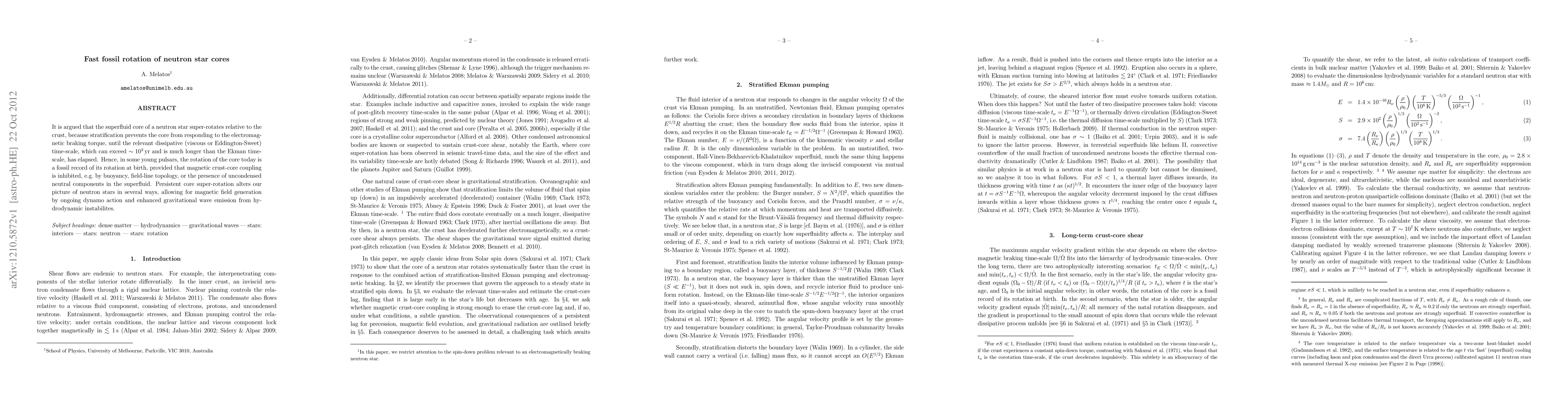 This paper argues that neutron star cores can super-rotate faster than their crusts due to stratification delaying the core's response to electromagnetic braking. This "fossil rotation" can persist for thousands of years, influencing magnetic field generation and gravitational wave emissions.