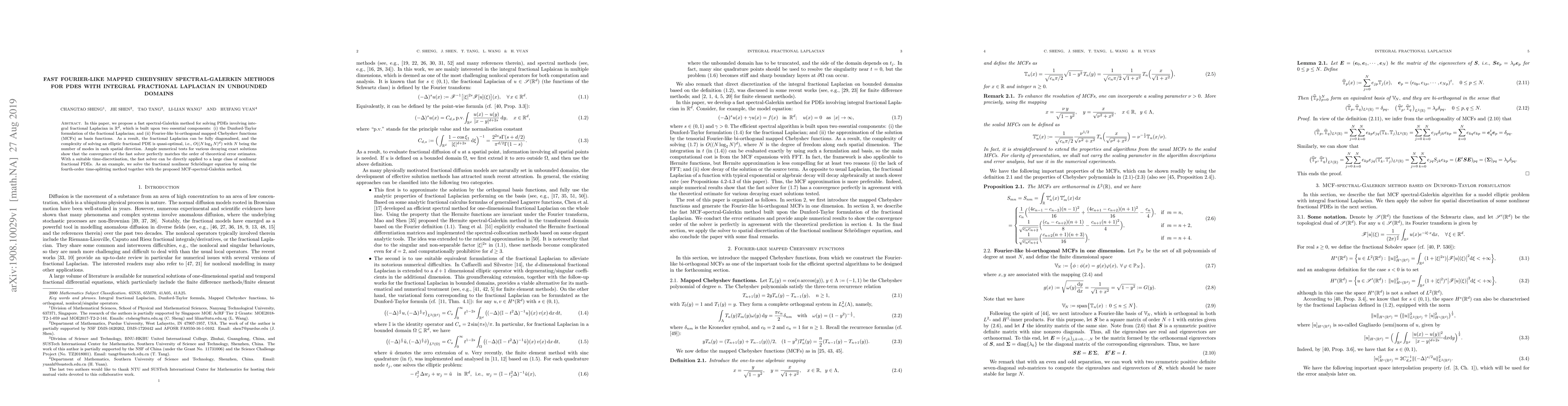 This paper introduces a fast spectral-Galerkin method for solving PDEs with integral fractional Laplacians in unbounded domains, utilizing the Dunford-Taylor formulation and mapped Chebyshev functions. The method achieves quasi-optimal complexity and demonstrates accurate convergence through numerical tests, including solving the fractional nonlinear Schrödinger equation.