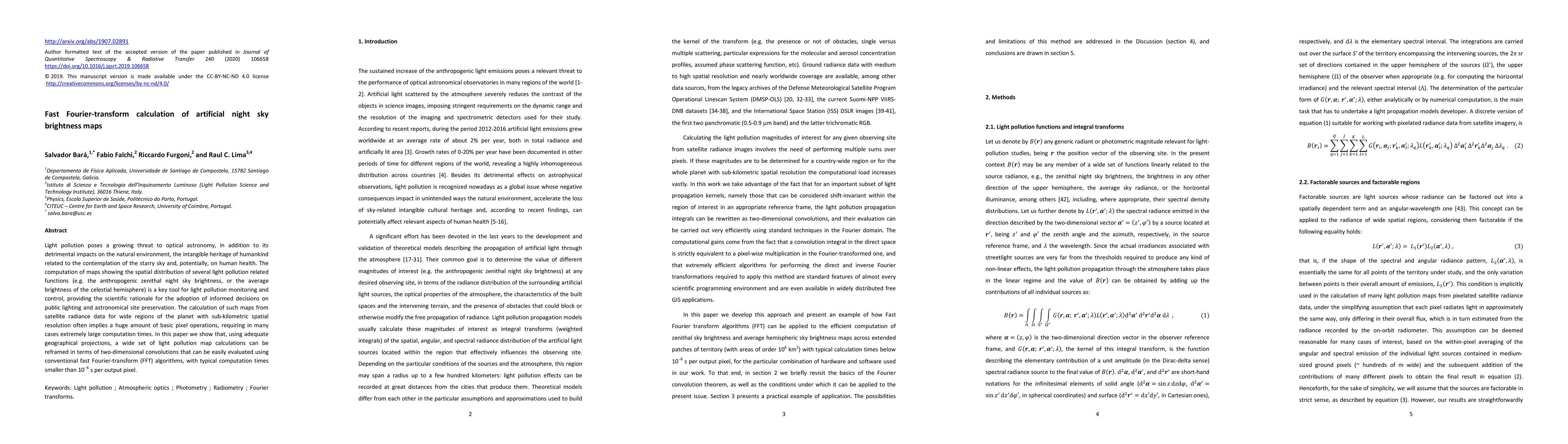 Researchers developed a method to efficiently calculate light pollution maps using fast Fourier-transform algorithms, reducing computation time to under 10^-6 seconds per pixel, for more effective monitoring and control of artificial night sky brightness.