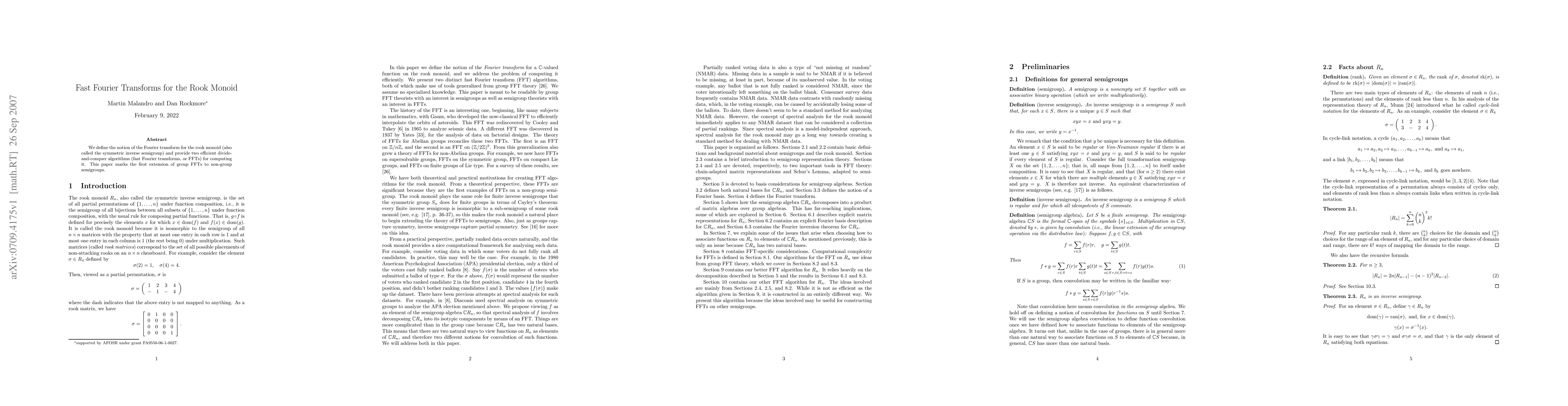 The paper introduces the Fourier transform for the rook monoid and presents two efficient algorithms for its computation, marking the first time FFT techniques are extended beyond groups to non-group semigroups.