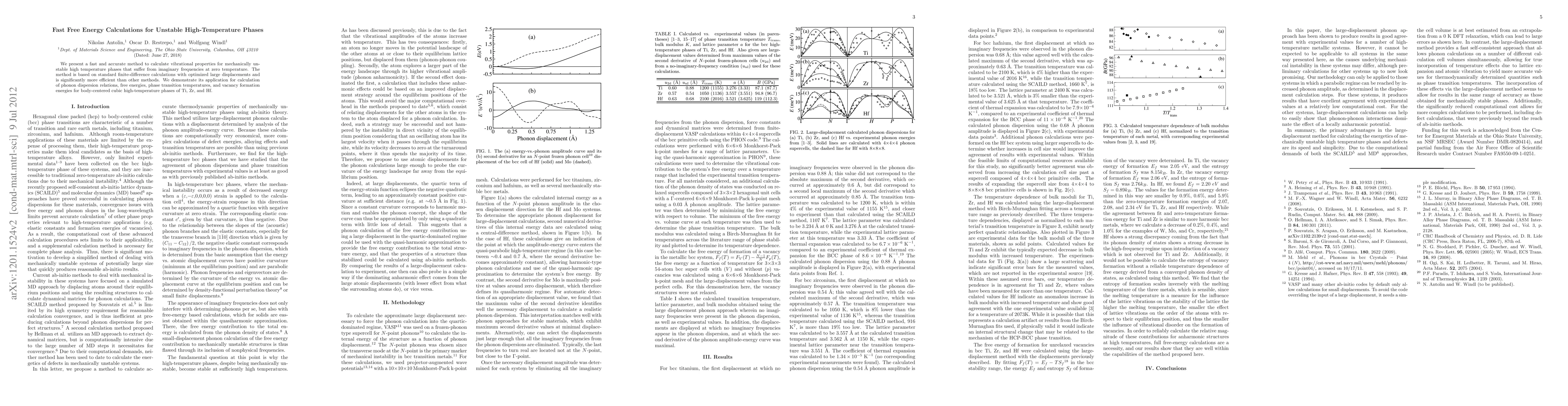 Researchers developed a fast and accurate method to calculate vibrational properties for unstable high-temperature phases, enabling calculations of phonon dispersion relations, free energies, and phase transition temperatures.