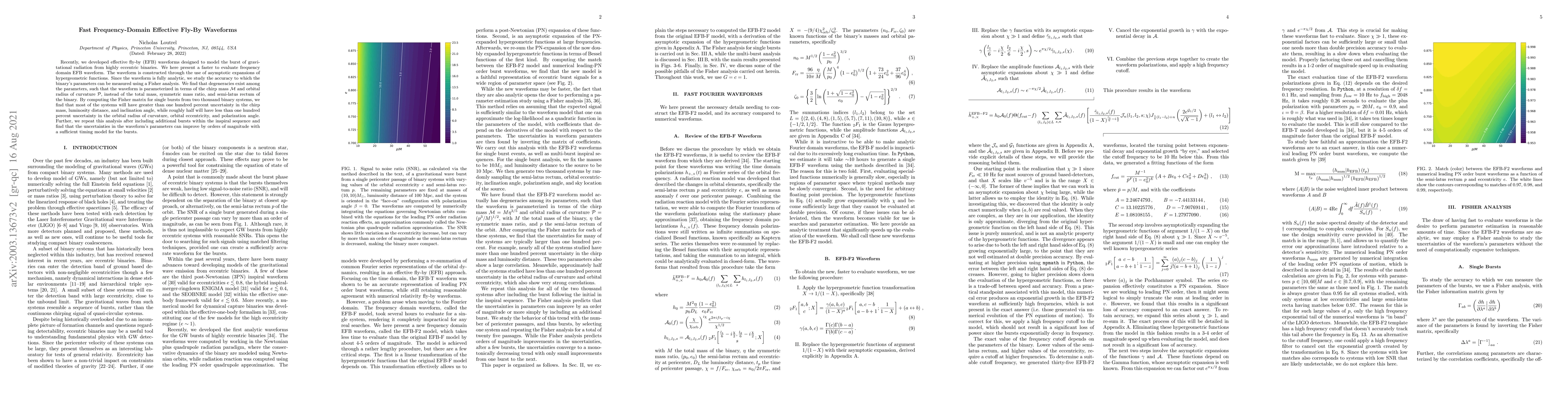This paper introduces a faster frequency-domain effective fly-by waveform for modeling gravitational radiation from eccentric binary systems. The waveform's accuracy is analyzed using a Fisher matrix, revealing degeneracies and significant uncertainties in parameters like chirp mass and luminosity distance, though uncertainties in orbital radius and eccentricity can improve with additional bursts.