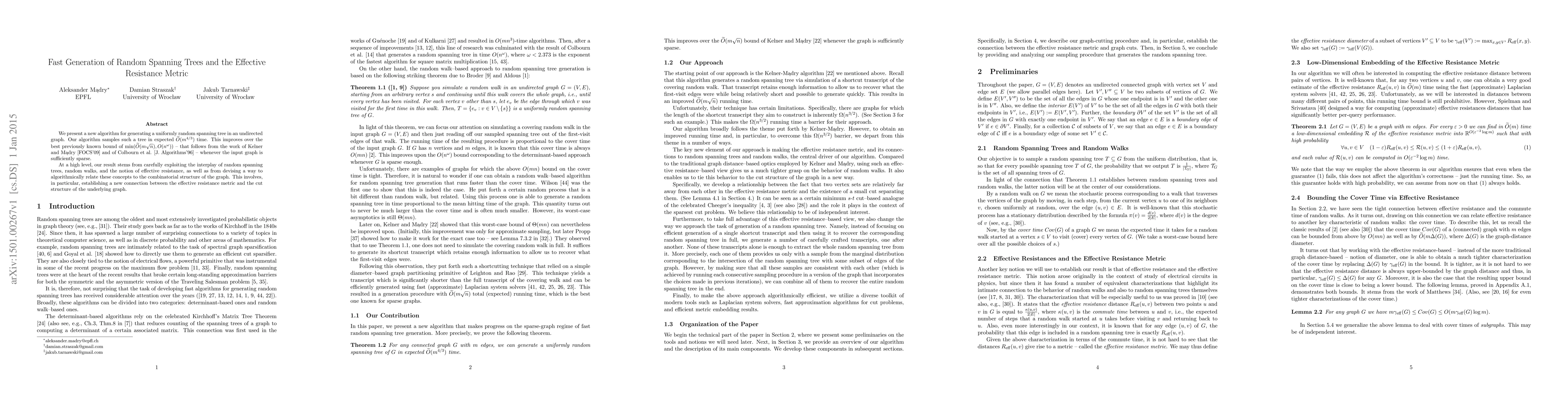 We present a new algorithm for generating a uniformly random spanning tree in an undirected graph. Our algorithm samples such a tree in expected $\tilde{O}(m^{4/3})$ time. This improves over the best previously known bound of $\min(\tilde{O}(m\sqrt{n}),O(n^{\omega}))$ -- that follows from the work of Kelner and M\k{a}dry [FOCS'09] and of Colbourn et al. [J. Algorithms'96] -- whenever the input graph is sufficiently sparse. At a high level, our result stems from carefully exploiting the interplay of random spanning trees, random walks, and the notion of effective resistance, as well as from devising a way to algorithmically relate these concepts to the combinatorial structure of the graph. This involves, in particular, establishing a new connection between the effective resistance metric and the cut structure of the underlying graph.