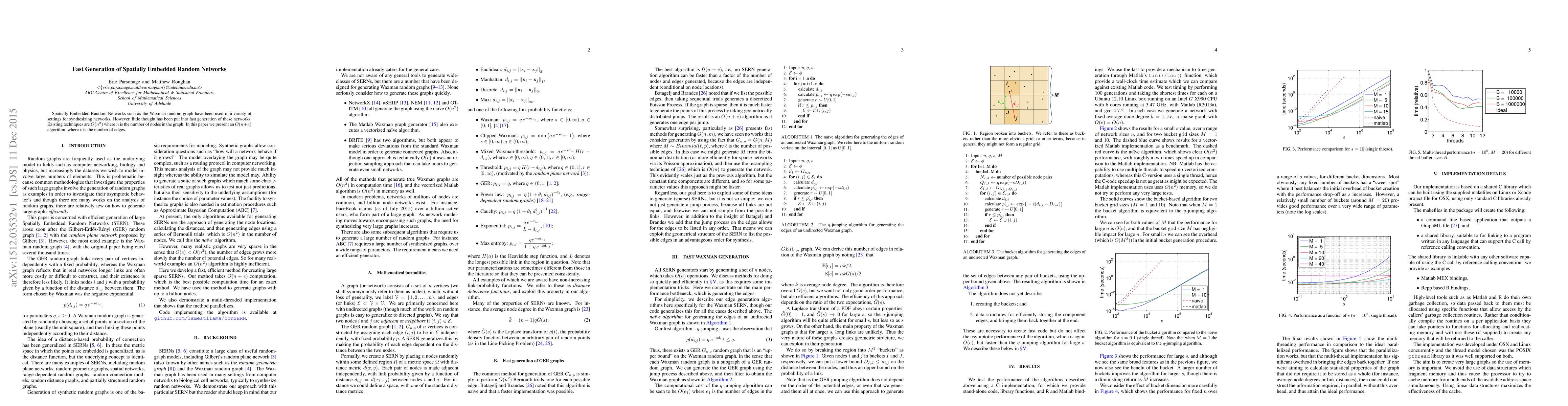 This paper proposes an efficient $O(n + e)$ algorithm for rapidly generating spatially embedded random networks like the Waxman graph, significantly improving upon existing $O(n^2)$ methods.