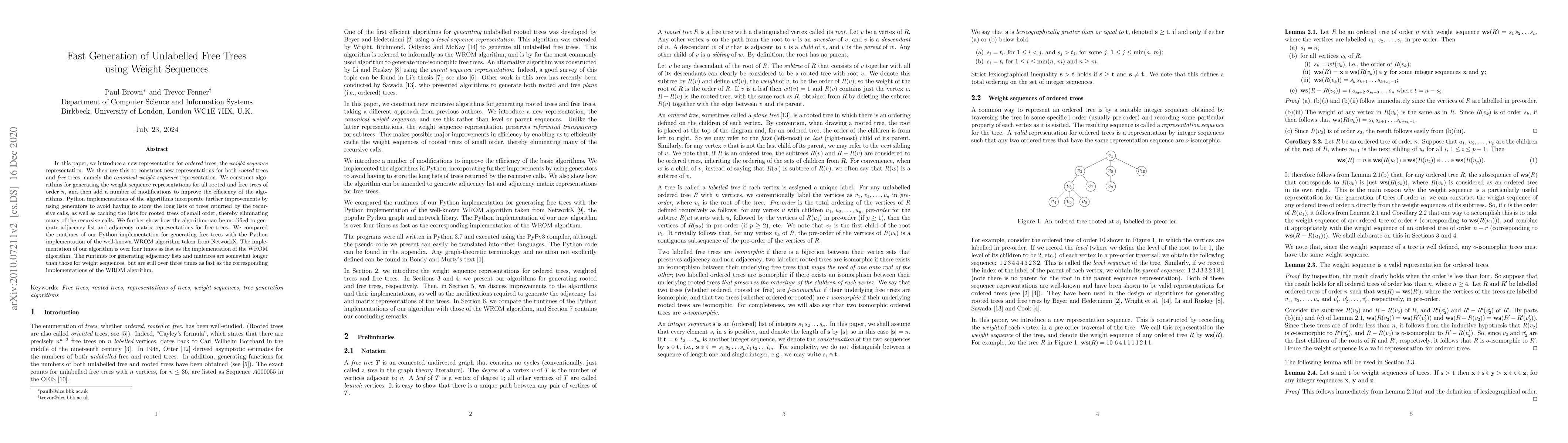 In this paper, we introduce a new representation for ordered trees, the weight sequence representation. We then use this to construct new representations for both rooted trees and free trees, namely the canonical weight sequence representation. We construct algorithms for generating the weight sequence representations for all rooted and free trees of order n, and then add a number of modifications to improve the efficiency of the algorithms. Python implementations of the algorithms incorporate further improvements by using generators to avoid having to store the long lists of trees returned by the recursive calls, as well as caching the lists for rooted trees of small order, thereby eliminating many of the recursive calls. We further show how the algorithm can be modifed to generate adjacency list and adjacency matrix representations for free trees. We compared the run-times of our Python implementation for generating free trees with the Python implementation of the well-known WROM algorithm taken from NetworkX. The implementation of our algorithm is over four times as fast as the implementation of the WROM algorithm. The run-times for generating adjacency lists and matrices are somewhat longer than those for weight sequences, but are still over three times as fast as the corresponding implementations of the WROM algorithm.