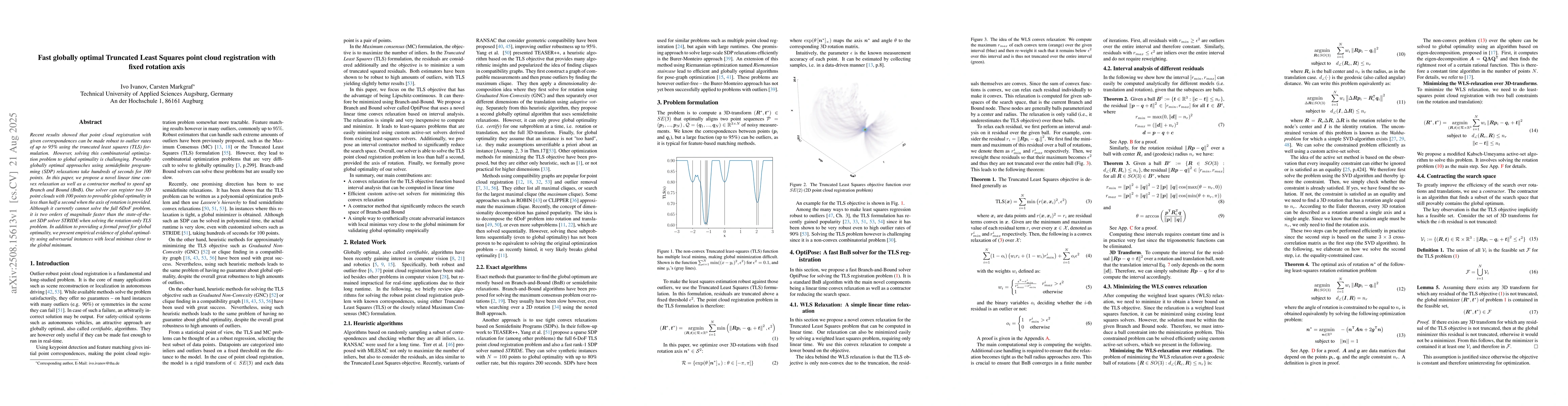 Recent results showed that point cloud registration with given correspondences can be made robust to outlier rates of up to 95\% using the truncated least squares (TLS) formulation. However, solving this combinatorial optimization problem to global optimality is challenging. Provably globally optimal approaches using semidefinite programming (SDP) relaxations take hundreds of seconds for 100 points. In this paper, we propose a novel linear time convex relaxation as well as a contractor method to speed up Branch and Bound (BnB). Our solver can register two 3D point clouds with 100 points to provable global optimality in less than half a second when the axis of rotation is provided. Although it currently cannot solve the full 6DoF problem, it is two orders of magnitude faster than the state-of-the-art SDP solver STRIDE when solving the rotation-only TLS problem. In addition to providing a formal proof for global optimality, we present empirical evidence of global optimality using adversarial instances with local minimas close to the global minimum.