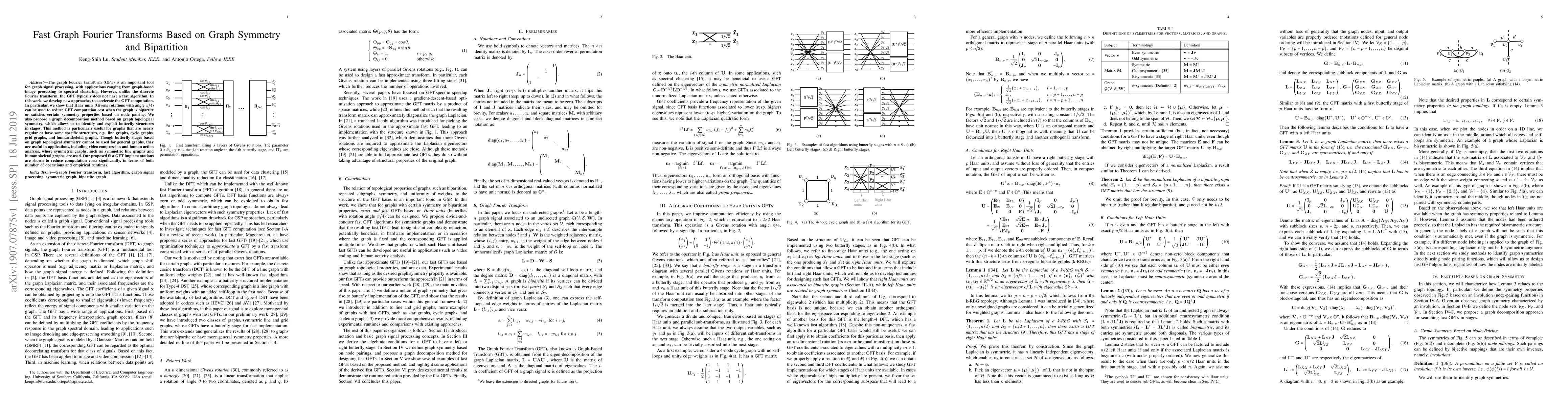 This paper develops fast graph Fourier transform algorithms for bipartite graphs and graphs with symmetry properties, reducing computational cost significantly.