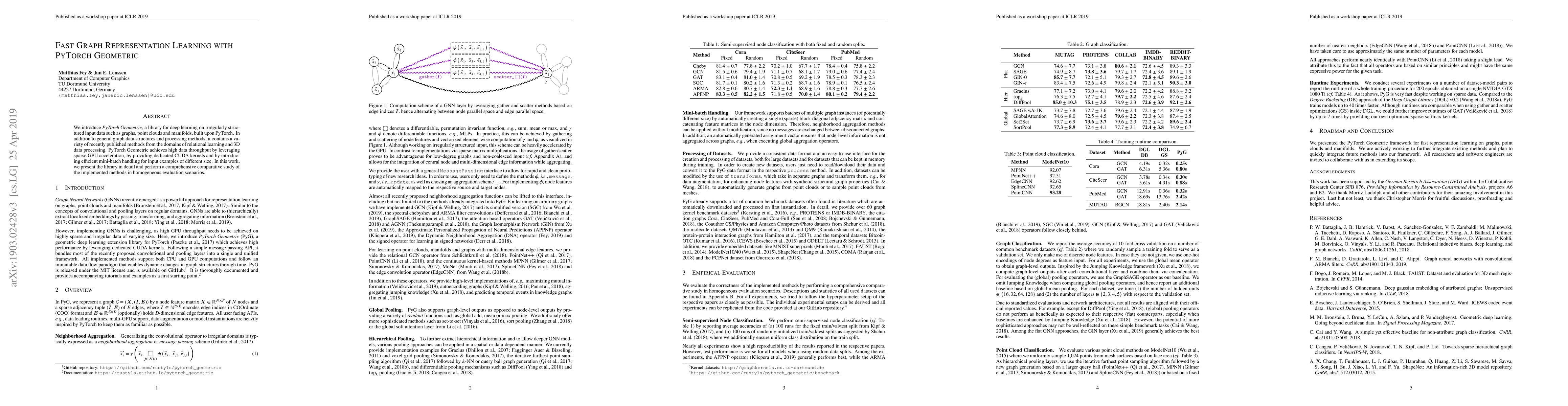PyTorch Geometric is a library for deep learning on graph and 3D data, utilizing sparse GPU acceleration and efficient mini-batch handling. It provides a comprehensive suite of methods for relational learning and 3D data processing, and a comparative study evaluates its performance.