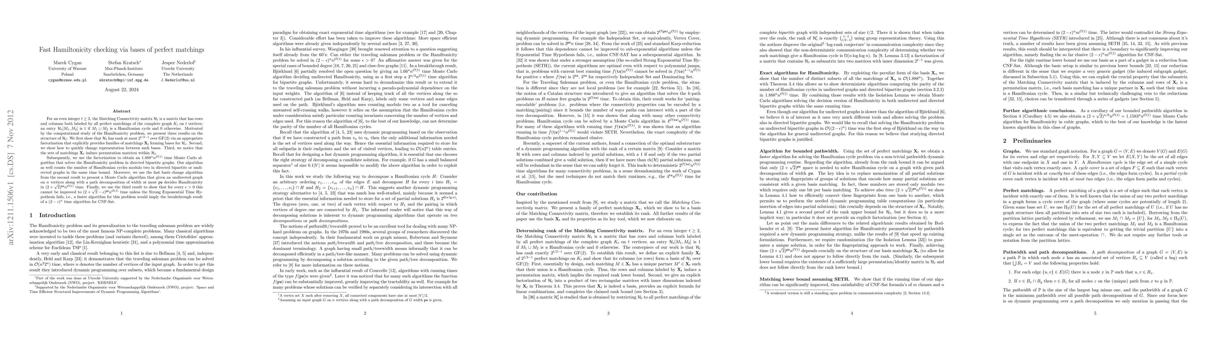 For an even integer t \geq 2, the Matchings Connecivity matrix H_t is a matrix that has rows and columns both labeled by all perfect matchings of the complete graph K_t on t vertices; an entry H_t[M_1,M_2] is 1 if M_1\cup M_2 is a Hamiltonian cycle and 0 otherwise. Motivated by the computational study of the Hamiltonicity problem, we present three results on the structure of H_t: We first show that H_t has rank at most 2^{t/2-1} over GF(2) via an appropriate factorization that explicitly provides families of matchings X_t forming bases for H_t. Second, we show how to quickly change representation between such bases. Third, we notice that the sets of matchings X_t induce permutation matrices within H_t. Subsequently, we use the factorization to obtain an 1.888^n n^{O(1)} time Monte Carlo algorithm that solves the Hamiltonicity problem in directed bipartite graphs. Our algorithm as well counts the number of Hamiltonian cycles modulo two in directed bipartite or undirected graphs in the same time bound. Moreover, we use the fast basis change algorithm from the second result to present a Monte Carlo algorithm that given an undirected graph on n vertices along with a path decomposition of width at most pw decides Hamiltonicity in (2+\sqrt{2})^{pw}n^{O(1)} time. Finally, we use the third result to show that for every \epsilon >0 this cannot be improved to (2+\sqrt{2}-\epsilon)^{pw}n^{O(1)} time unless the Strong Exponential Time Hypothesis fails, i.e., a faster algorithm for this problem would imply the breakthrough result of a (2-\epsilon)^n time algorithm for CNF-Sat.
