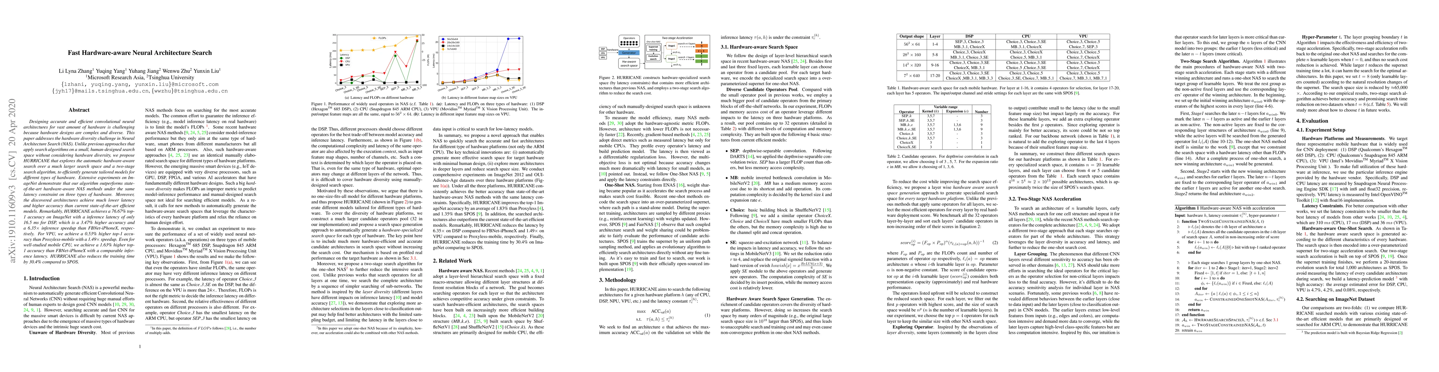 This paper introduces HURRICANE, a novel hardware-aware neural architecture search method that efficiently explores a larger search space to generate optimized architectures for diverse hardware. Experiments on ImageNet show that HURRICANE outperforms existing methods, achieving higher accuracy and lower latency across DSP, VPU, and mobile CPU platforms.