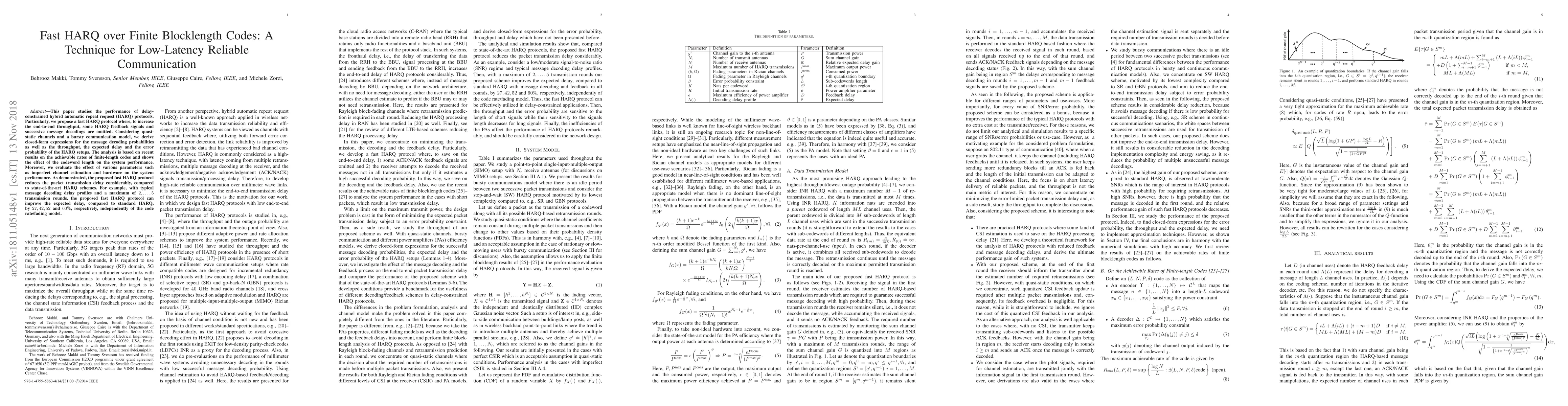 This paper studies the performance of delay-constrained hybrid automatic repeat request HARQ protocols. Particularly, we propose a fast HARQ protocol where, to increase the end-to-end throughput, some HARQ feedback signals and successive message decodings are omitted. Considering quasi-static channels and a bursty communication model, we derive closed-form expressions for the message decoding probabilities as well as the throughput, the expected delay and the error probability of the HARQ setups. The analysis is based on recent results on the achievable rates of finite-length codes and shows the effect of the codeword length on the system performance. Moreover, we evaluate the effect of various parameters such as imperfect channel estimation and hardware on the system performance. As demonstrated, the proposed fast HARQ protocol reduces the packet transmission delay considerably, compared to state-of-the-art HARQ schemes. For example, with typical message decoding delay profiles and a maximum of 2,...,5 transmission rounds, the proposed fast HARQ protocol can improve the expected delay, compared to standard HARQ, by 27, 42, 52 and 60%, respectively, independently of the code rate/fading model.